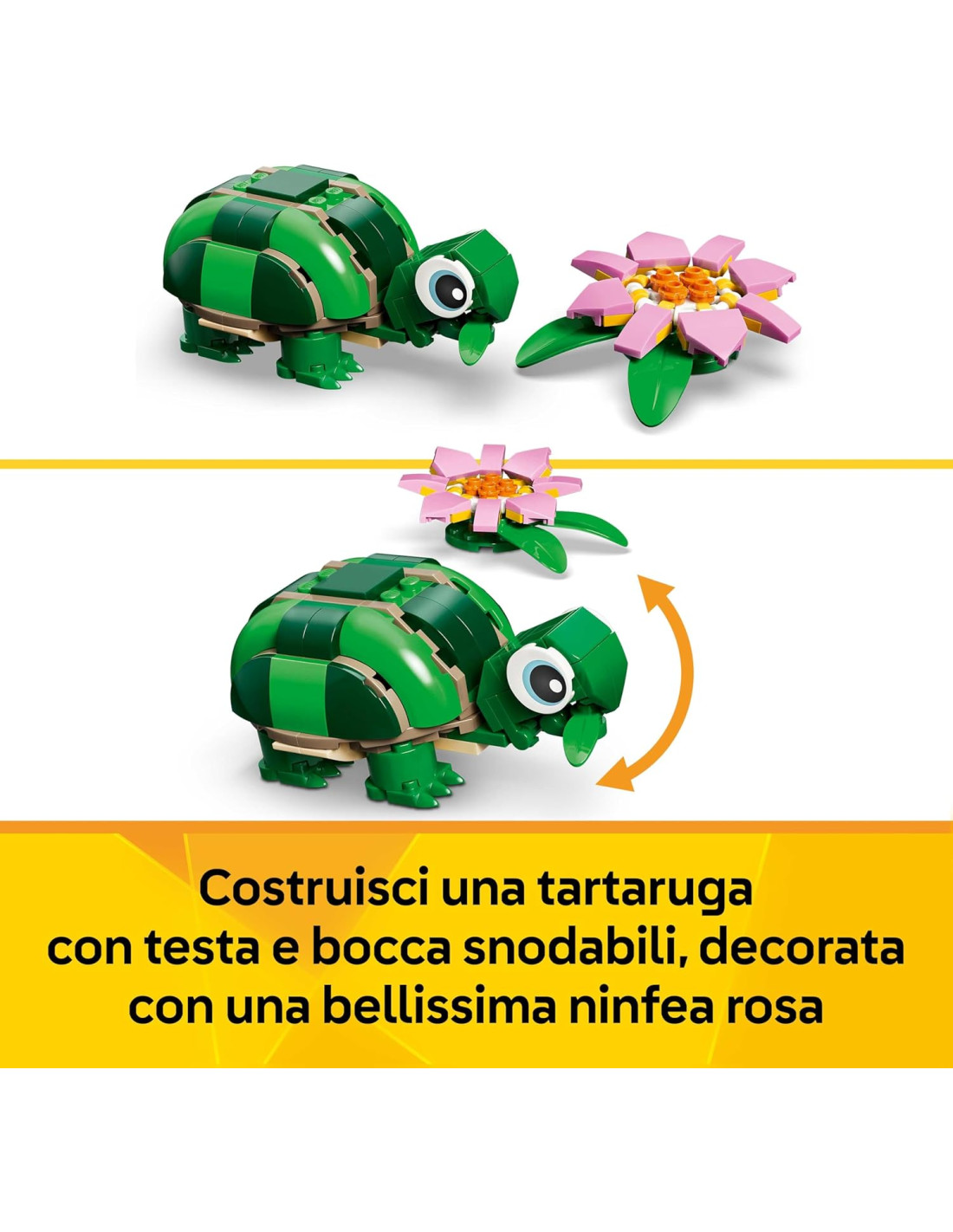 LEGO Creator 3in1 Tartaruga con Fiore di Ninfea Giocattolo - Animale Trasformabile in Camaleonte o Rana - Decorazione da Camera da Letto Fai Da Te