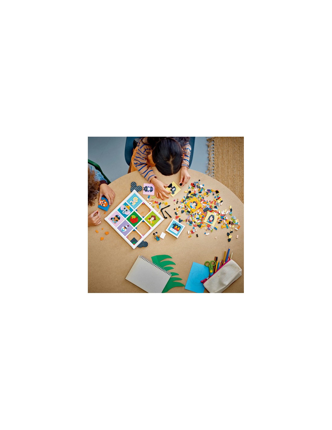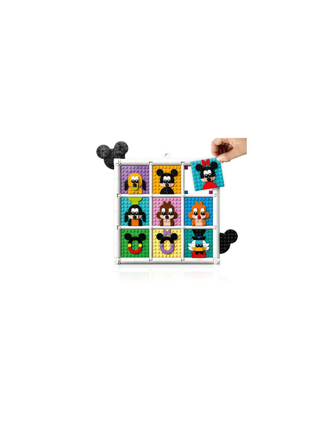 Il set contiene 12 basi 8x8, cornici e ganci e tantissime tessere per costruire fino a 12 icone contemporaneamente, oltre a un'esclusiva minifigure di Topolino Disney e alle istruzioni per la costruzione con ulteriori spunti.