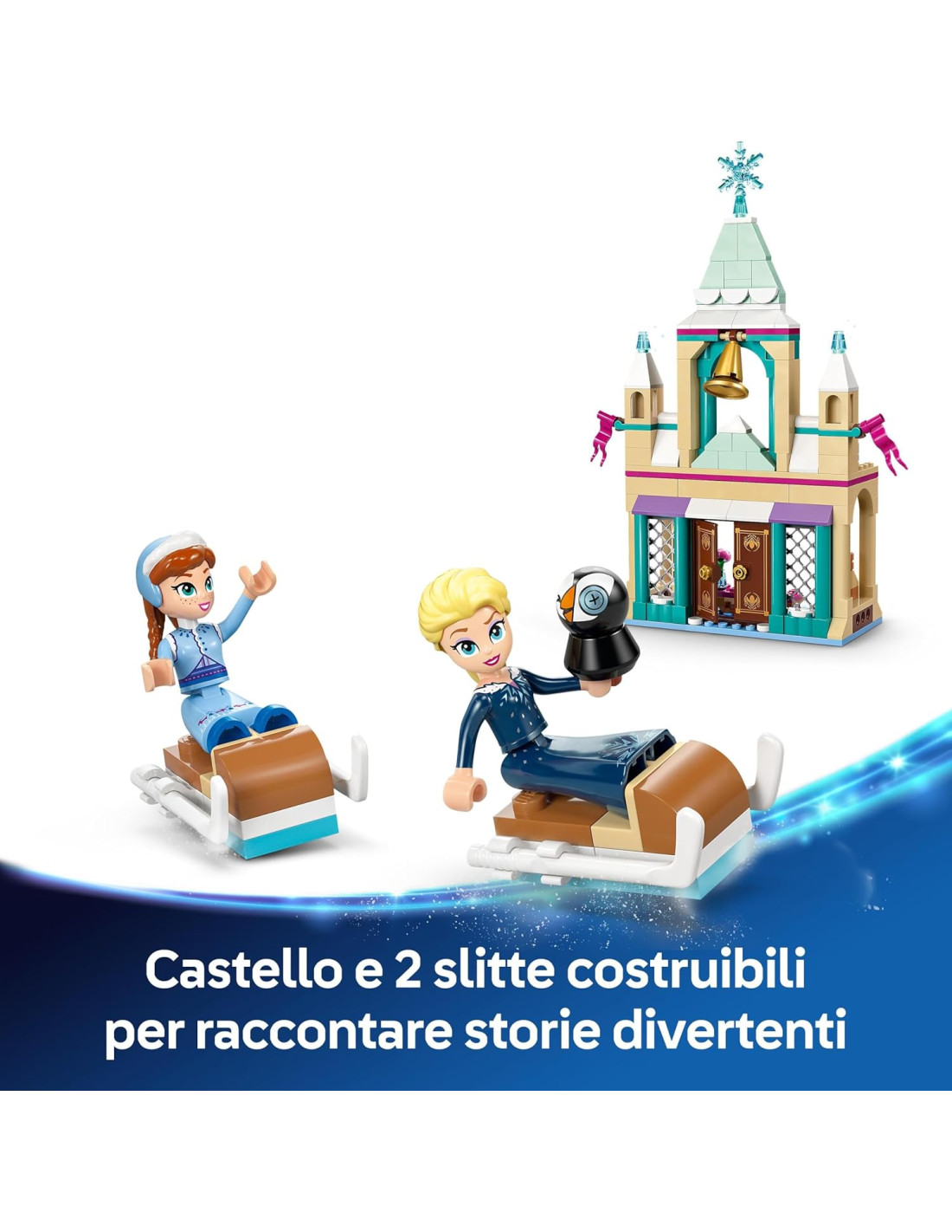 Set con castello giocattolo LEGO | Disney Frozen di Arendelle: regala alle bambine e ai bambini da 5 anni in su il set del Castello di Arendelle Frozen da esposizione, un gioco di fantasia per i fan delle Principesse Disney e delle costruzioni LEGO Castello giocattolo Frozen di Arendelle costruibile: questo kit contiene un castello con porte apribili che conducono in una sala da pranzo, una camera da letto con 2 letti, 2 slitte costruibili, 3 personaggi del film Frozen Disney e altro ancora Funzioni per la narrazione di storie: questo gioco Frozen LEGO | Disney con il castello costruibile, è dotato di porte anteriori apribili, 2 letti e cassetti mobili al piano superiore, oltre a 2 slitte costruibili per le corse Divertente modellino Disney in mattoncini LEGO: i piccoli possono assemblare il castello giocattolo e interagire con i personaggi LEGO | Disney di Elsa e Anna, ognuna con abiti diversi, e con Olaf, e ricrea le scene preferite dei film o nuove storie Piccolo regalo di compleanno per bambine e bambini 5+ anni: questo giocattolo fantasy conil castello LEGO costruibile, 3 personaggi e accessori, è un divertente regalo per i fan e per gli appassionati di film e dei giochi con le Principesse Disney Gioco LEGO | Disney: aggiungi questo gioco di fantasia costruibile agli altri set della gamma di costruzioni LEGO | Disney (disponibili separatamente), per ampliare i giochi di ruolo creativi