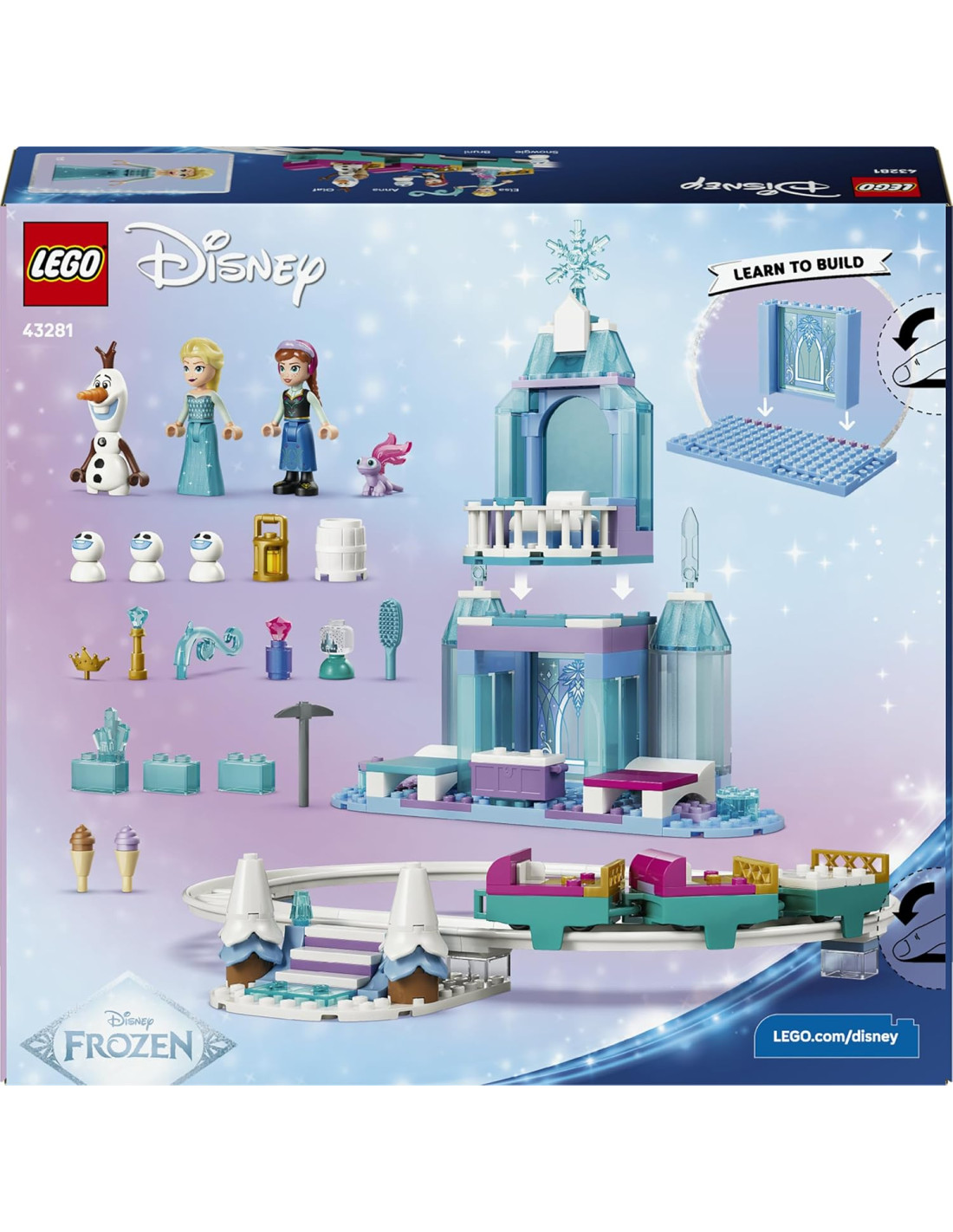 LEGOLEGO | Disney Frozen Castello di Ghiaccio di Elsa e Avventura sulla Neve - Giocattolo con Mini Bamboline di Anna ed Elsa, Olaf, Binari del Treno e Carrelli da Neve
