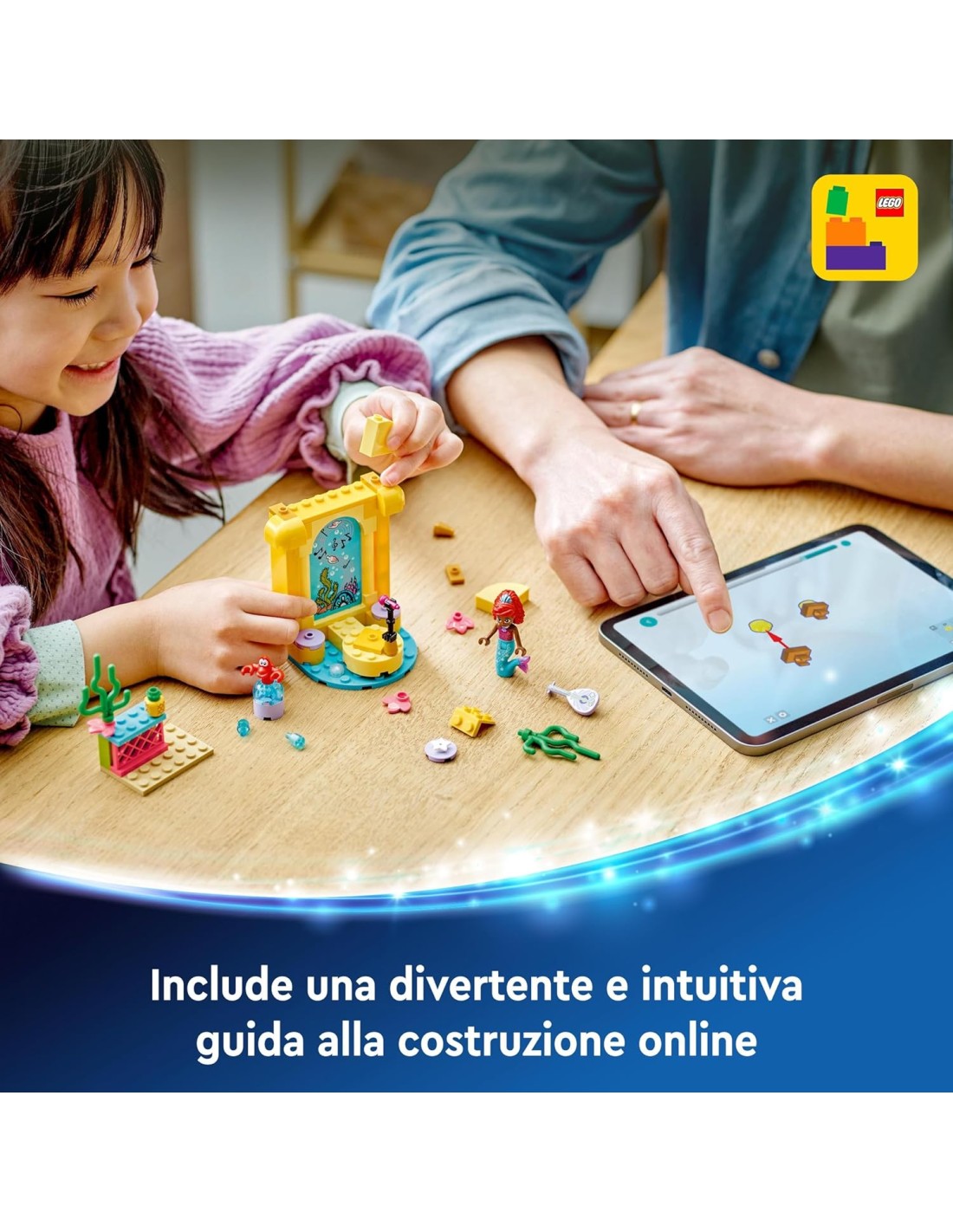 Spettacoli e gioco creativo attendono i bambini dai 4 anni in su mentre imparano a costruire con questo Il palcoscenico musicale di Ariel LEGO | Disney Princess (43235). Questo set regalo costruibile Disney Princess è progettato per migliorare le capacità di risoluzione dei problemi e ispirare i più piccoli a divertirsi con il gioco creativo senza fine. Questo giocattolo costruibile per i bambini include la mini-doll LEGO | Disney di Ariel e l'animale LEGO | Disney di Sebastian. C'è anche un palco con una pista girevole e un'area di ristoro con una sedia e divertenti elementi per avviare la storia, tra cui una chitarra, maracas e un ananas. Un elemento Starter Brick offre ai bambini una base solida per avviare il gioco rapidamente, mentre le intuitive istruzioni sono fornite sotto forma di una colorata guida illustrata, realizzata per i bambini che stanno imparando a leggere. Questo fantastico set costruibile 4+ LEGO ? Disney soddisfa la passione dei bambini per i giocattoli costruibili de La Sirenetta, è facile da portare con sé alle play-date e consente agli adulti di condividere il divertimento costruttivo con i più piccoli.