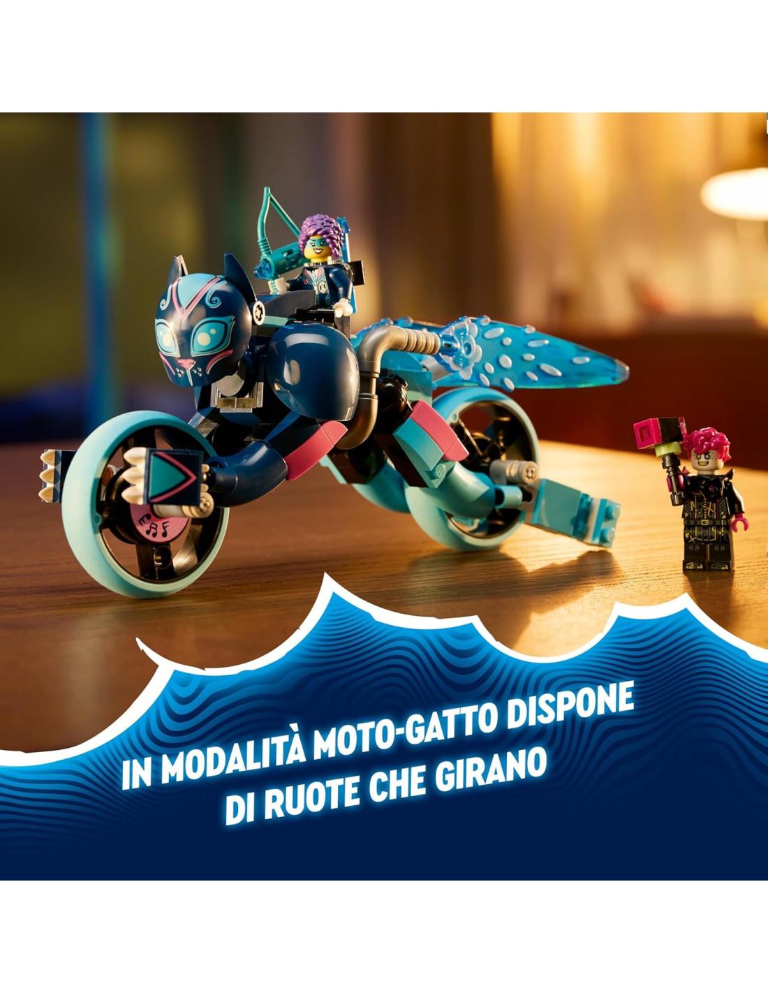 Accendi l'immaginazione dei piccoli con il giocattolo de La Moto-Gatto di Zoey LEGO DREAMZzz (71479) da costruire, un gioco fantasy per bambini e bambine da 7 anni in su per tante avventure senza tempo. Ispirato all'avvincente programma televisivo, il gatto giocattolo ricostruibile consente ai bambini di viaggiare nel Mondo dei Sogni su un fantastico veicolo LEGO. Il corvo della Mai-Strega ha rubato un ricordo e i piccoli devono aiutare Zoey LEGO DREAMZzz a recuperarlo! 2 opzioni di costruzione tra cui scegliere; l'animale giocattolo ha parti snodabili e può essere trasformato in una fantastica moto-gatto con ruote, oppure in un veloce gatto giocattolo con turbo booster. La motocicletta insegue il corvo e il gatto giocattolo lo combatte. Un gioco creativo che include 2 minifigure, tra cui Zoey dotata di arco, posizionabili sulla parte posteriore del gatto LEGO DREAMZzz. Questo set è un divertente regalo di compleanno per i bambini e per i fan della serie di giochi LEGO DREAMZzz. Sono comprese le istruzioni per la costruzione basate sulla storia che consentono ai bambini di diventare eroi del Mondo dei Sogni attraverso 2 avventure, per un doppio divertimento creativo a tema felino.