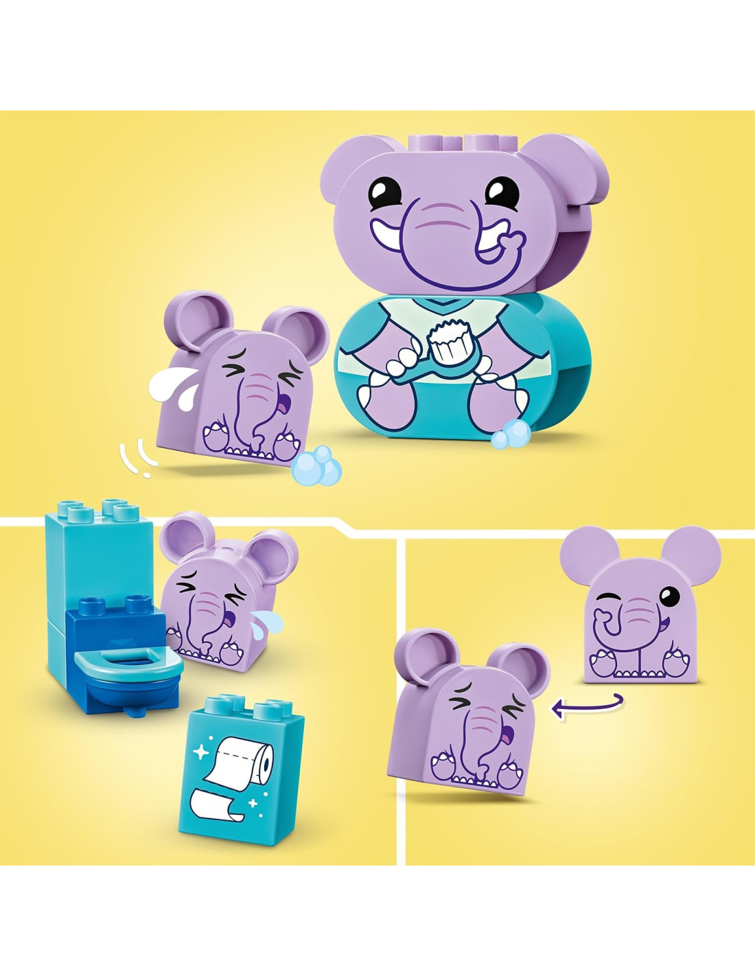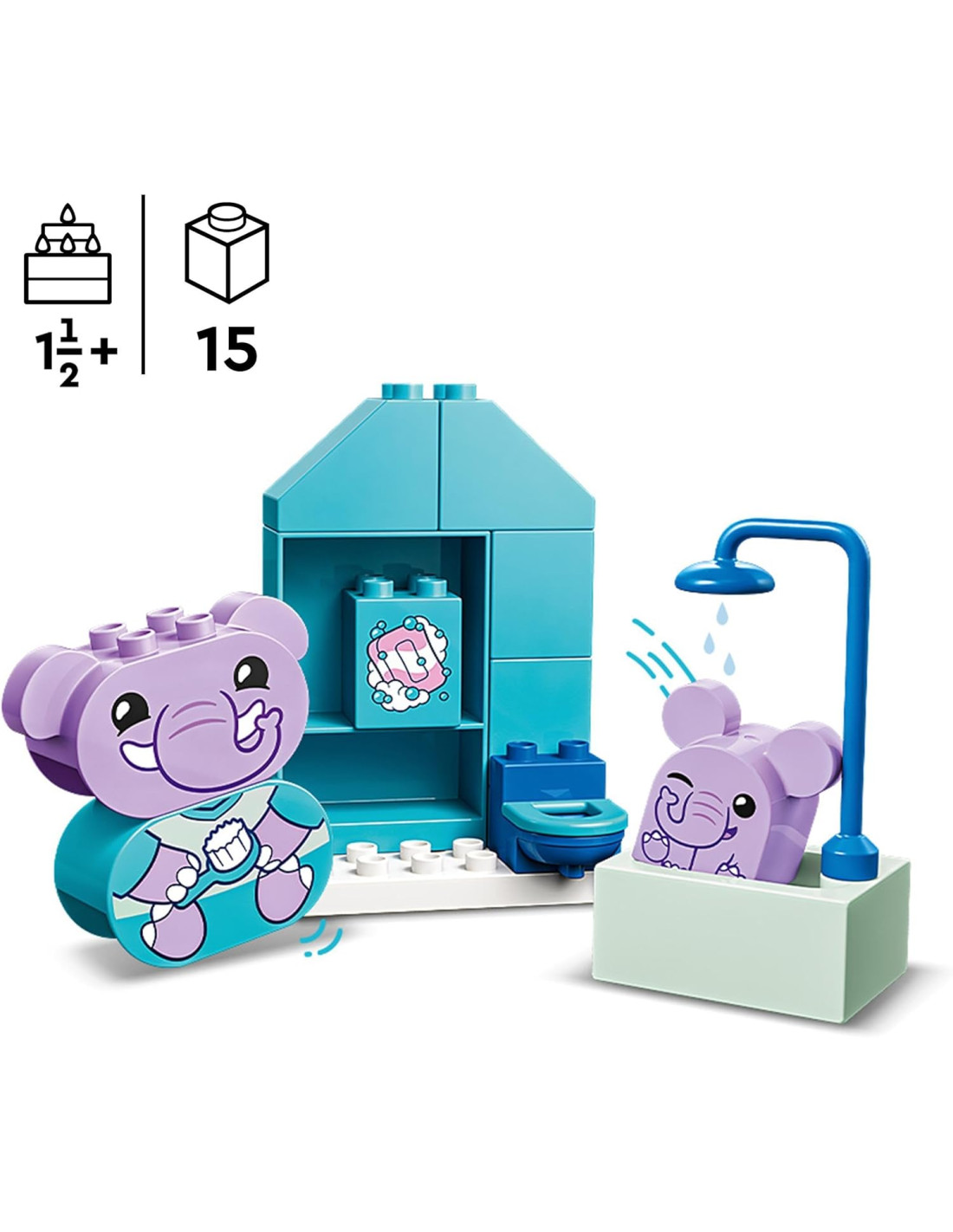 Il set con animali per l'età prescolare Attività quotidiane: il bagnetto – Il mio primo LEGO DUPLO insegna ai bambini l'igiene mentre aiutano l'elefantino a lavarsi.