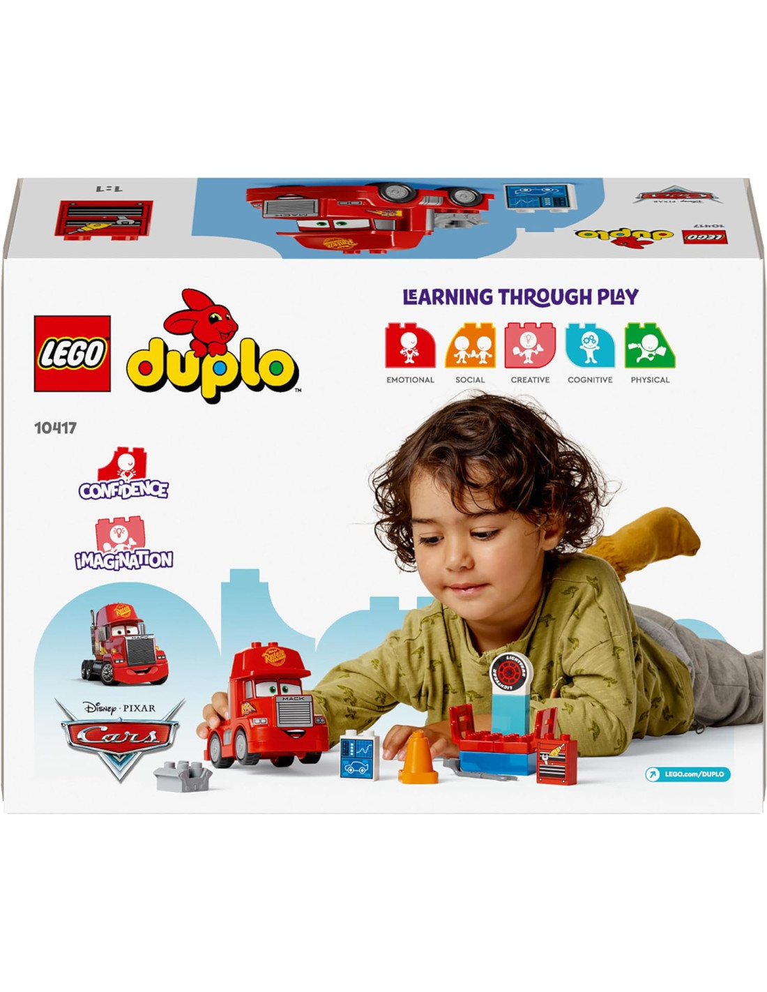 Metti il turbo al gioco degli appassionati di veicoli in età prescolare dai due anni in su con questo giocattolo costruibile Mack al circuito ispirato ai film Disney e Pixar Cars e contenente un grande camion giocattolo rosso costruibile. I bambini aiutano Mack a preparare tutte le parti per l'arrivo di Saetta McQueen ai box. Possono mettere a punto il suo nuovo motore con l'elemento chiave inglese, e successivamente possono aiutare Mack a controllare le statistiche di Saetta sul computer per assicurarsi che l'auto da corsa sia in perfette condizioni per battere gli altri concorrenti. Con personaggi familiari, fantastiche ambientazioni e divertenti funzioni, i giocattoli costruibili LEGO DUPLO Disney e Pixar Cars ispirano le famiglie a partecipare e a interagire, creando divertenti storie di Mack tratte dai film e condividendo preziosi traguardi dello sviluppo con il loro piccolo meccanico.