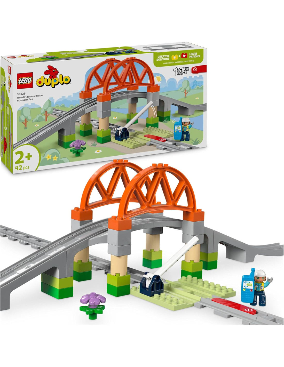 LEGOLEGO DUPLO Pack di Espansione Ponte e Binari Ferroviari, Giochi Didattici per Bambini e Bambine da 2 Anni con Elementi e Pista per Treno Giocattolo (non incluso), Metodo Educativo Montessori 10426