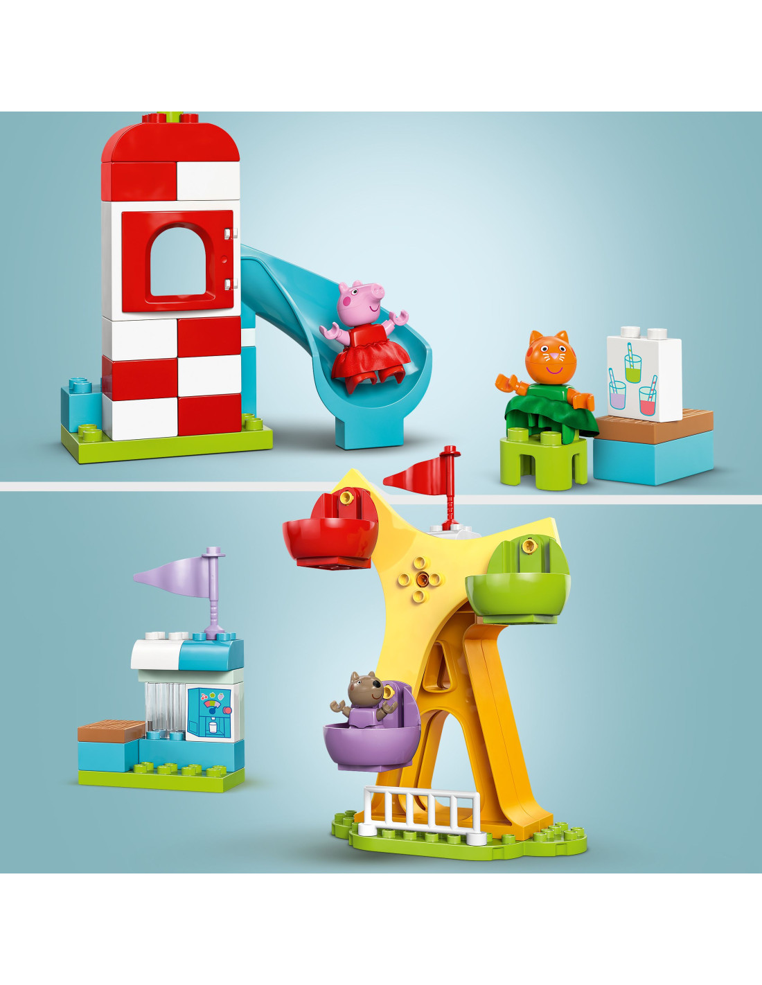 LEGO DUPLO Peppa Pig Luna Park - Giochi Didattici per la Motricità Fine per Bambine e Bambini da 2 Anni con Ruota Panoramica, Scivolo, Bar e 3 Personaggi - Attività di Sviluppo Precoce - 10453