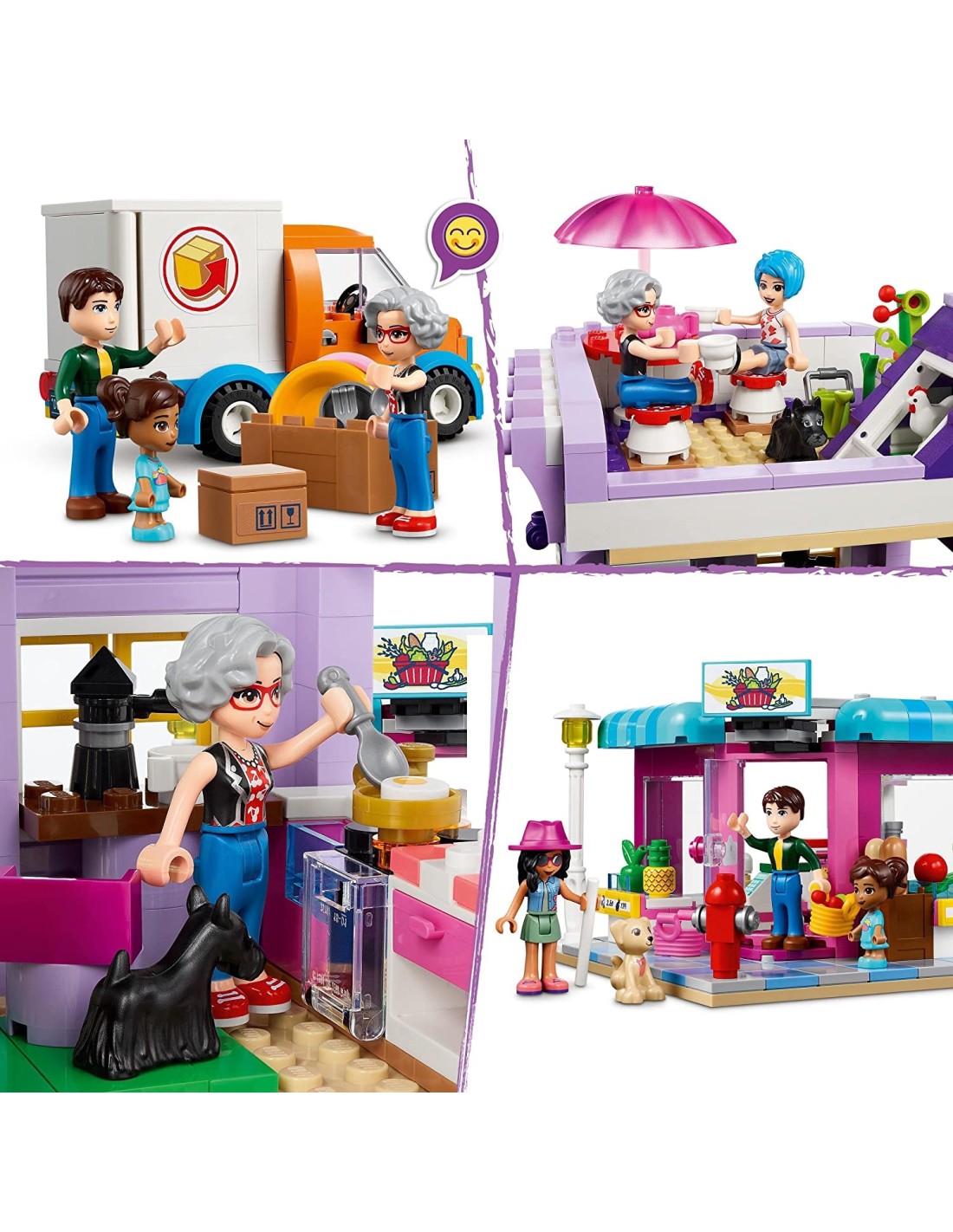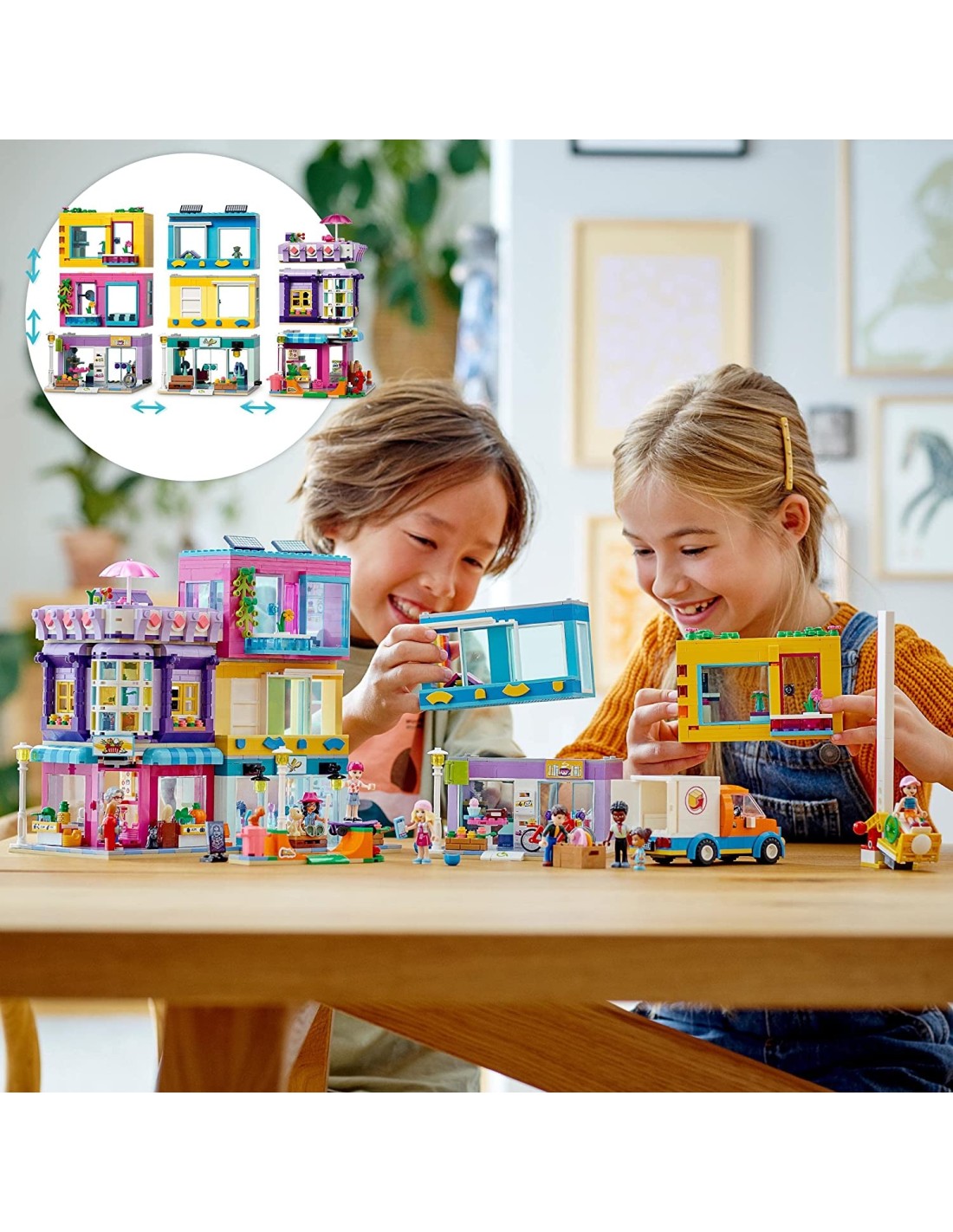 Include una casa delle bambole LEGO a 3 piani composta da 3 edifici, che si uniscono per formare un quartiere con appartamenti, negozi di giocattoli e servizi I bambini possono fare acquisti nel negozio di alimentari, visitare il salone LEGO Friends per farsi belli, lavorare nell'ufficio di casa o divertirsi con lo skateboard nel parco Trascorri ore di divertimento con amici di ogni origine e cultura nel salone di bellezza e nel book café di LEGO Friends Heartlake City Include 7 mini bamboline, 1 micro bambolina, 4 animaletti e un camion mobile per insegnare ai bambini ad accogliere una nuova famiglia all'interno della comunità Grazie agli edifici modulari di questo giocattolo LEGO Friends, i bambini possono modificare la strada infinite volte, per un divertimento che non finisce mai Gli accessori includono una sedia a rotelle, un annaffiatoio, una macchina del caffè, alimenti per il negozio, sushi e bacchette, un asciugacapelli e diverse parrucche I giocattoli creativi di LEGO Friends sono il regalo di compleanno perfetto per tutti i bambini e le bambine di 8+ anni che amano divertirsi insieme agli amici