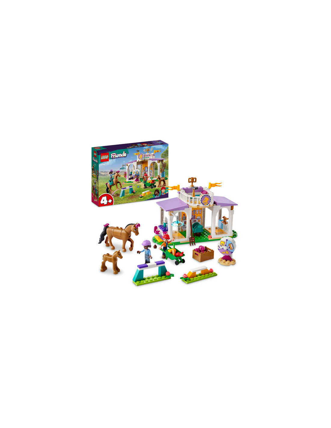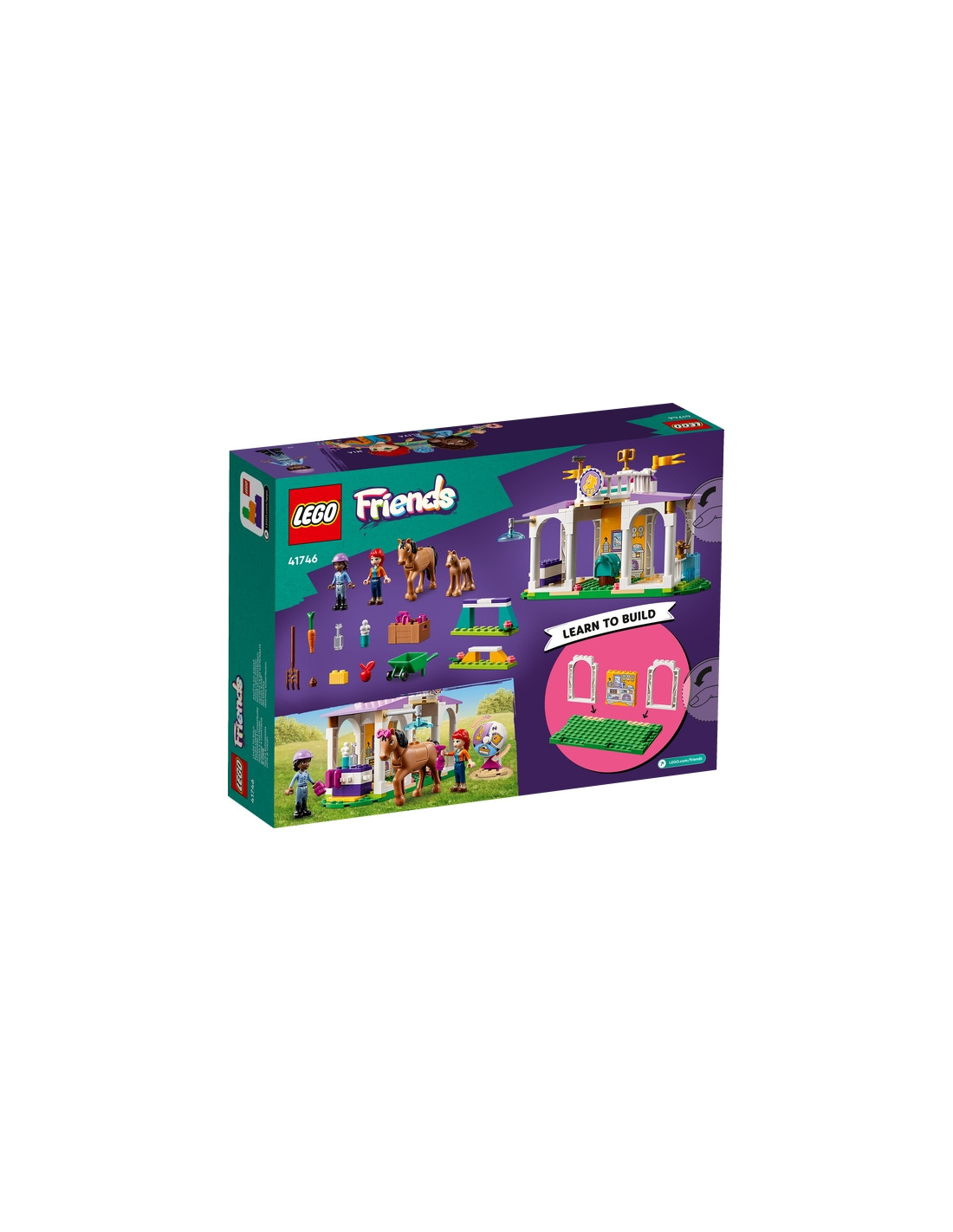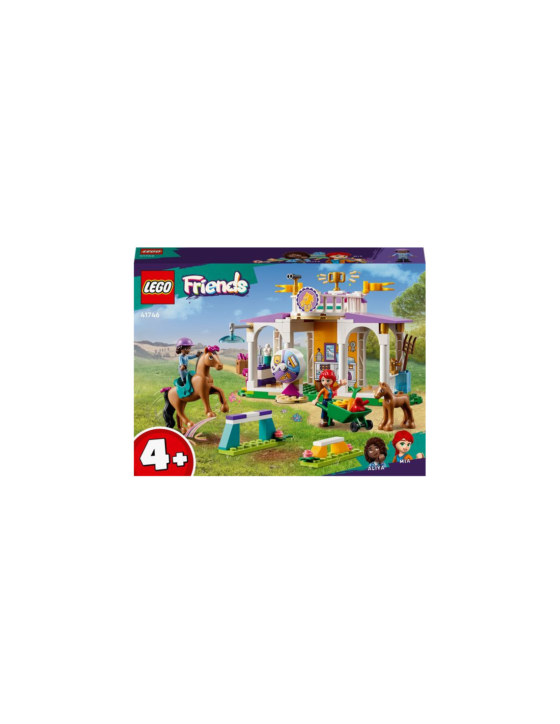 I bambini di 4+ anni che amano i cavalli e la cura degli animali possono raccontare tante storie fantasiose con il set da costruzione Addestramento equestre LEGO Friends (41746). Questo set giocattolo aiuta i bambini a imparare a costruire e contiene le mini-doll di Aliya e Mia, oltre a 2 cavalli e accessori per il gioco creativo.