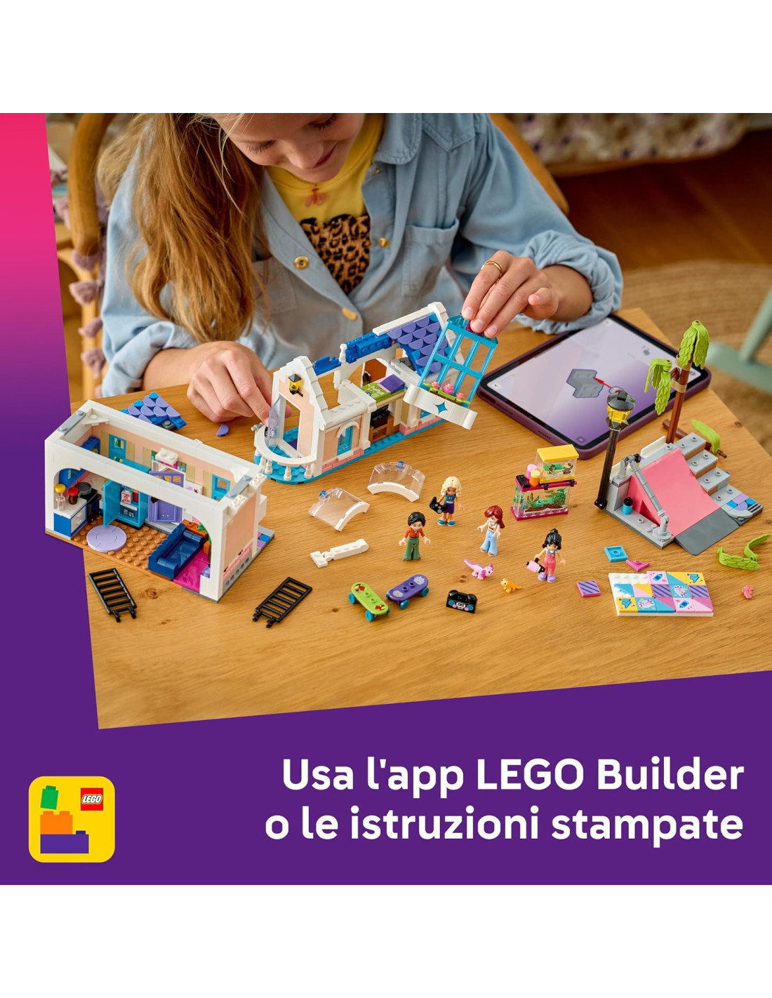 4 PERSONAGGI LEGO FRIENDS E 2 ANIMALI: include le mini doll di Liann, Michelle, Paisley e Nova, oltre alle figure di un axolotl giocattolo e di un geco con i loro terrari e del cibo