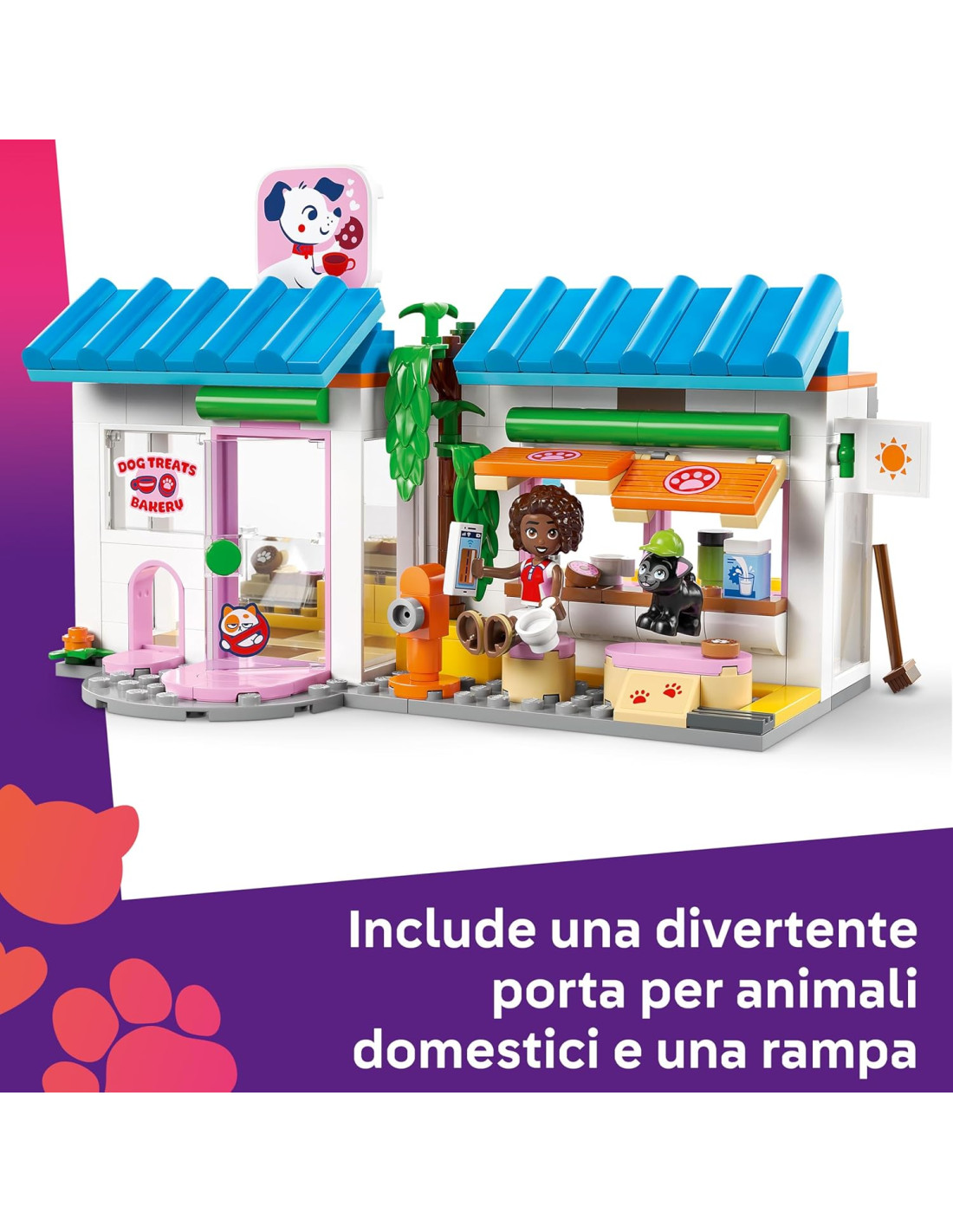LEGO Friends Il Forno dei Biscottini per Cani - Negozio Giocattolo con 2 Mini Bamboline, 4 Animali, Trasportino, Cibo e Accessori