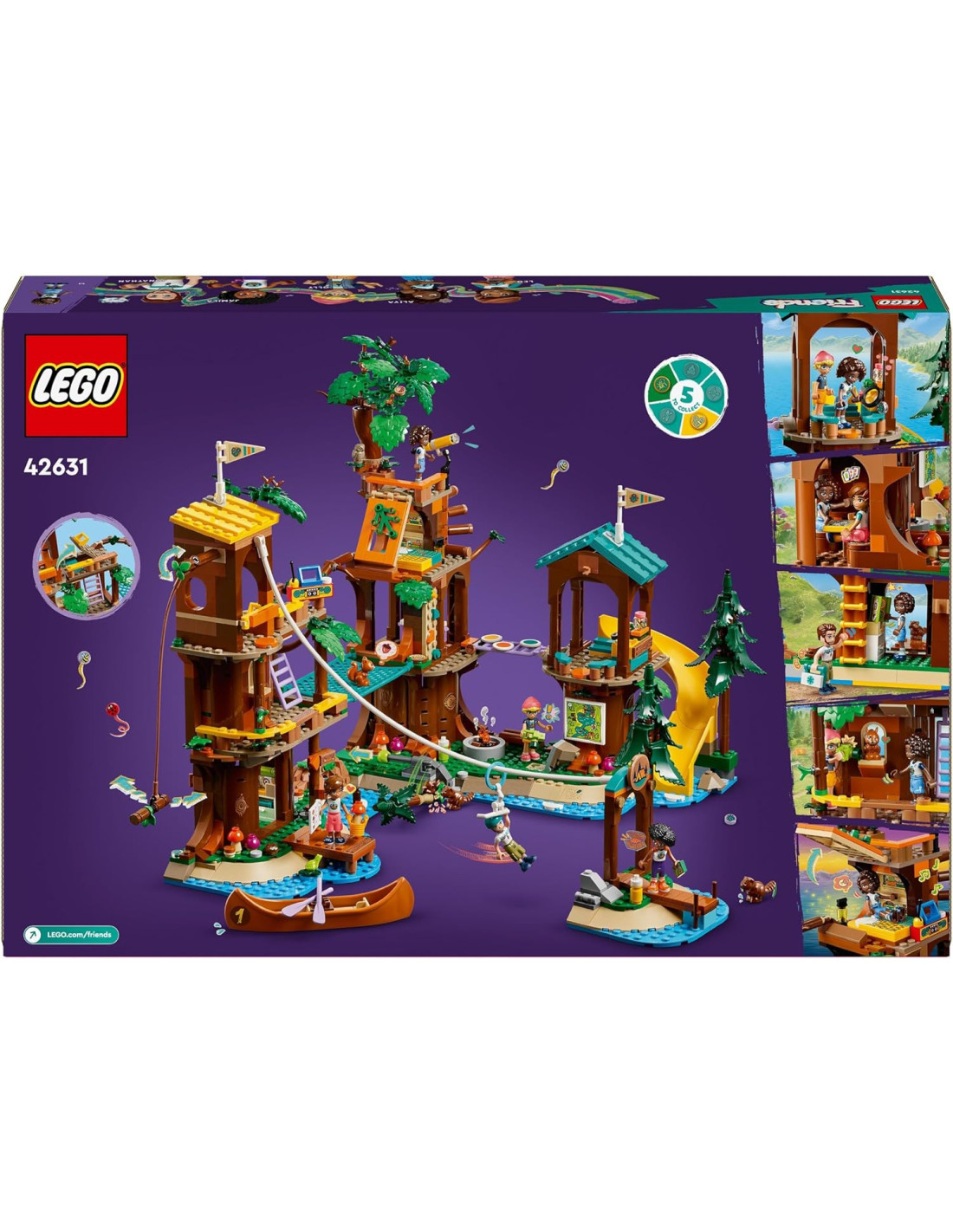 Il set La casa sull'albero al campo avventure LEGO Friends Adventure (42631) è ricco di storie per i bambini e le bambine dagli 8 anni in su. I bambini possono raccontare la storia degli amici Leo, Aliya, Jamila e Olly mentre provano nuove entusiasmanti attività sotto la guida dell'istruttore del campo Jonathan. Il set costruibile è ricco di divertenti funzionalità per il gioco creativo e include 5 mini-doll, accessori e tanti animali, tra cui 2 castori che stanno costruendo una diga. Fai sfrecciare i personaggi lungo la teleferica o aiutali a superare il percorso a ostacoli con il ponte di tronchi, la parete da arrampicata e le botole. Ci sono anche attività come il canottaggio, oltre a un'isola che può essere raggiunta in barca o in teleferica! Il tuo giovane esploratore può guidare i personaggi in una caccia agli insetti: riusciranno a trovare tutte le creature nascoste e a conquistare il badge? Cerca l'adorabile scoiattolo che ha costruito il suo nascondiglio in cima all'albero, completo di lettino! Questo set è una fantastica idea regalo per i bambini che amano i giocattoli e i playset con case sull'albero.