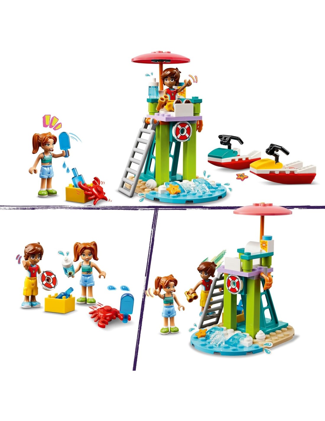 Lo moto d'acqua LEGO Friends è un fantasioso giocattolo per i bambini e include 2 moto d'acqua, 2 mini-doll, un delfino e un granchio.