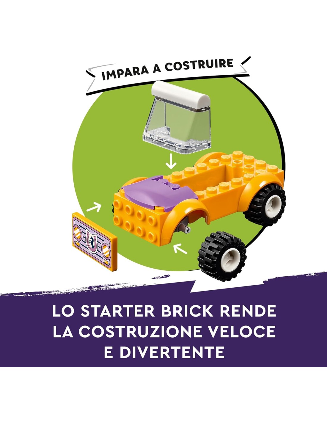 Da' il via a ore di giochi creativi e a tante avventure, con il playset LEGO Friends Rimorchio con Cavallo e Pony (42634), un divertente gioco per bambine e bambini da 4 anni in su. Questo kit per appassionati di cura degli animali giocattolo comprende un auto con rimorchio da costruire, su cui poter trasportare il cibo del cavallo giocattolo e del pony inlcusi nel set, che appartengono ai personaggi LEGO Friends di Liann e Zoya. Un simpatico regalo di compleanno per bambini creativi, completo di tanti accessori giocattolo per divertenti giochi di ruolo; i bambini possono aiutare le mini bamboline a spazzolare gli animali e a prepararli per la galoppata. Nella foresta trovano un albero caduto con cui allenare i cavalli a saltare gli ostacoli. Dopo una divertente giornata in sella, gli amici premiano i cavalli LEGO con una gustosissima carota. Le costruzioni LEGO 4+ sono progettate per donare ai piccoli un'esperienza di gioco divertente, mentre utilizzano i grandi blocchi per costruire. Sono set dotati di un utile Starter Brick, una solida base con cui i bambini possono iniziare a mettere facilmente in scena le loro avventure. Con l'app LEGO Builder genitori e bambini sono guidati in un'esperienza di costruzione intuitiva, con strumenti per ingrandire e ruotare i modelli in 3D, salvare i set e tenere traccia dei progressi fatti.
