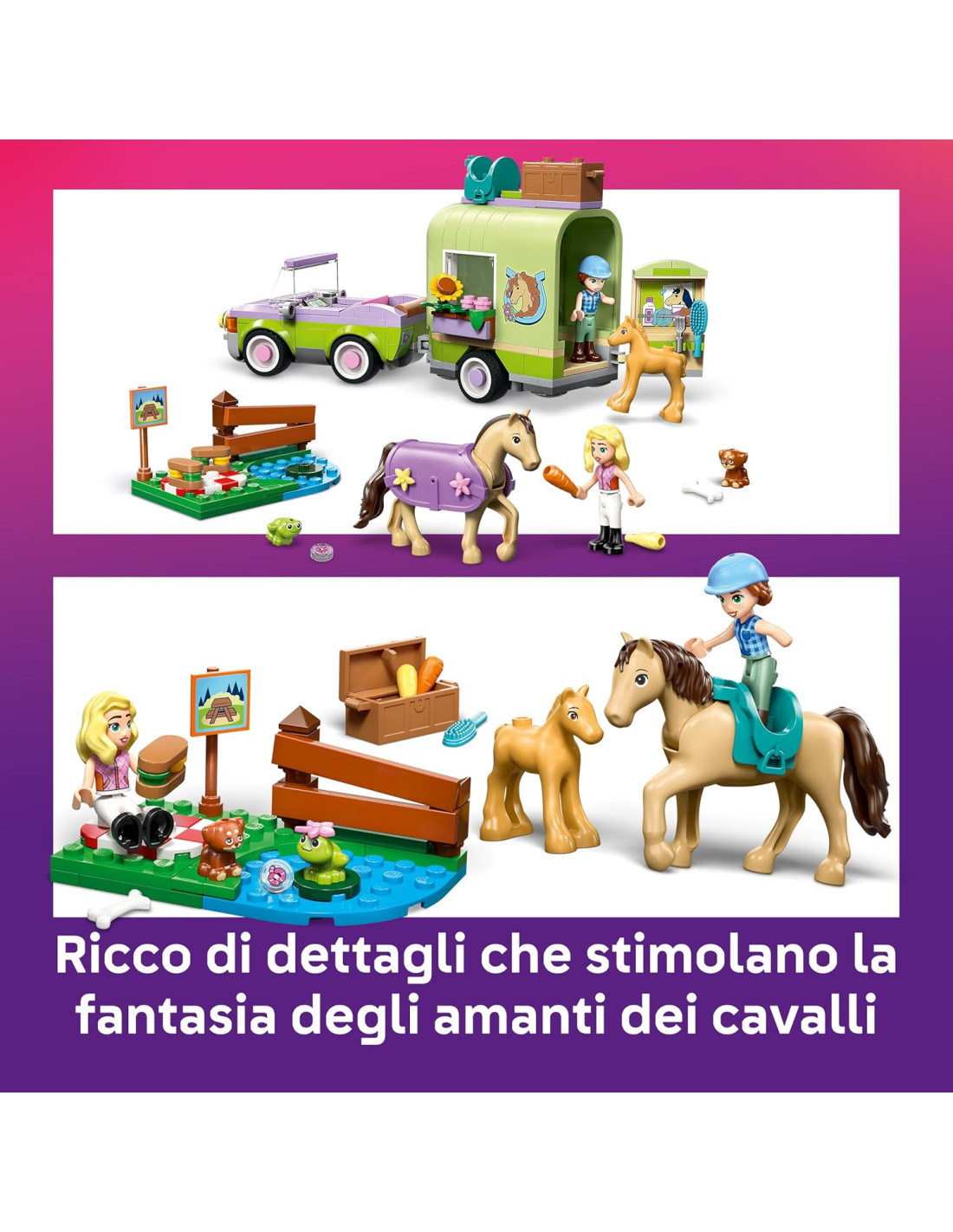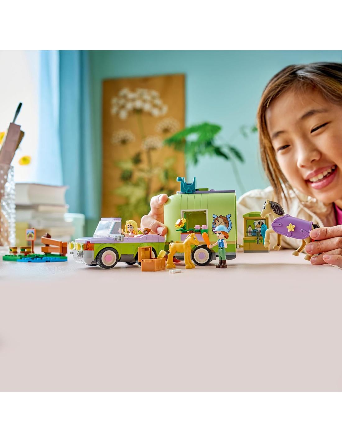 LEGO Friends Rimorchio per Cavallo e Puledro - Set con Cavallo Giocattolo, Pony, Accessori per la Cura degli Animali, Auto con Carrello e 2 Mini Bamboline