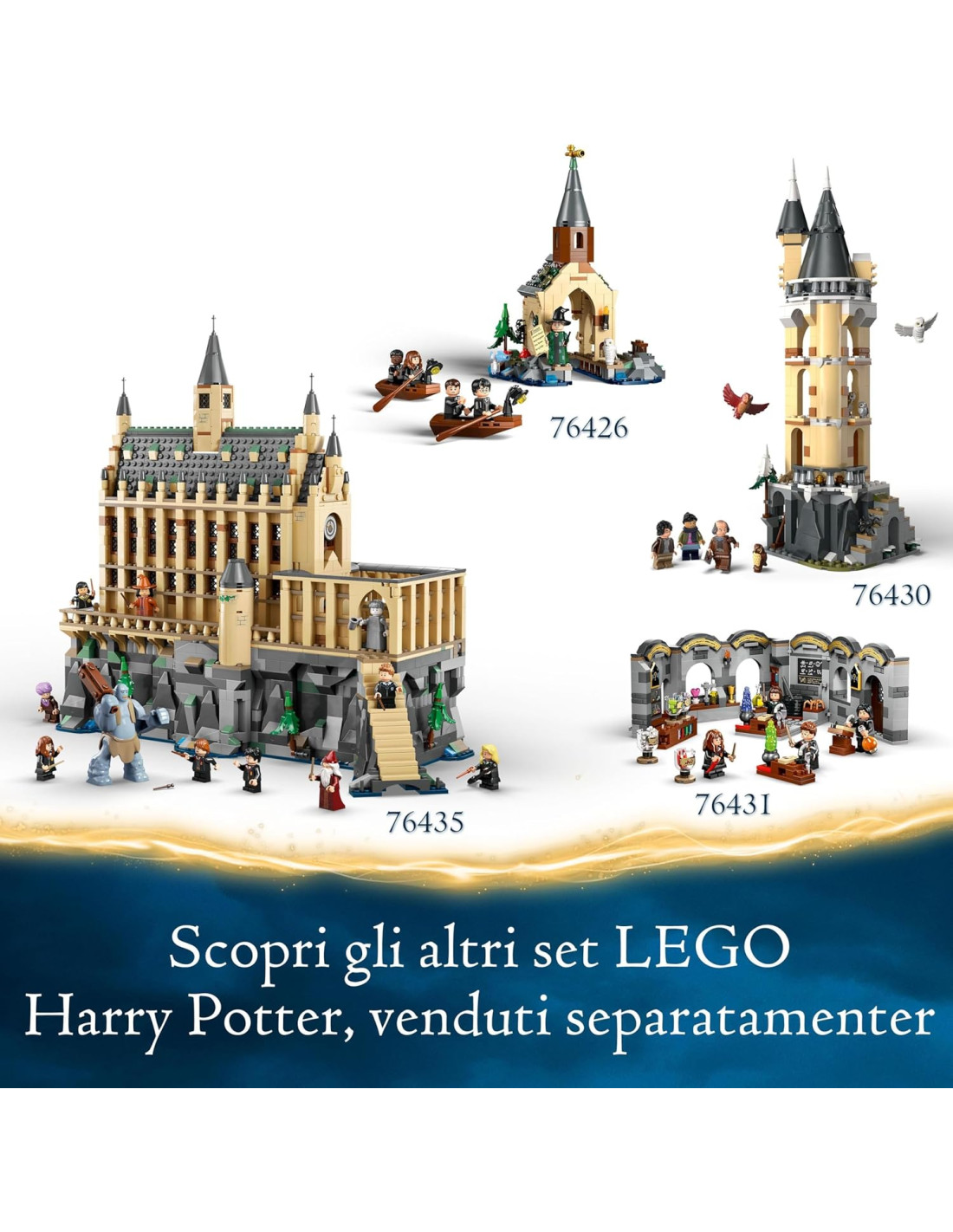 Combinazioni di giocattoli del Mondo Magico LEGO Harry Potter: le minifigure e i modelli costruibili all'interno del Calendario dell'Avvento per bambini, possono essere aggiunti al set 76435 della Sala Grande LEGO Harry Potter