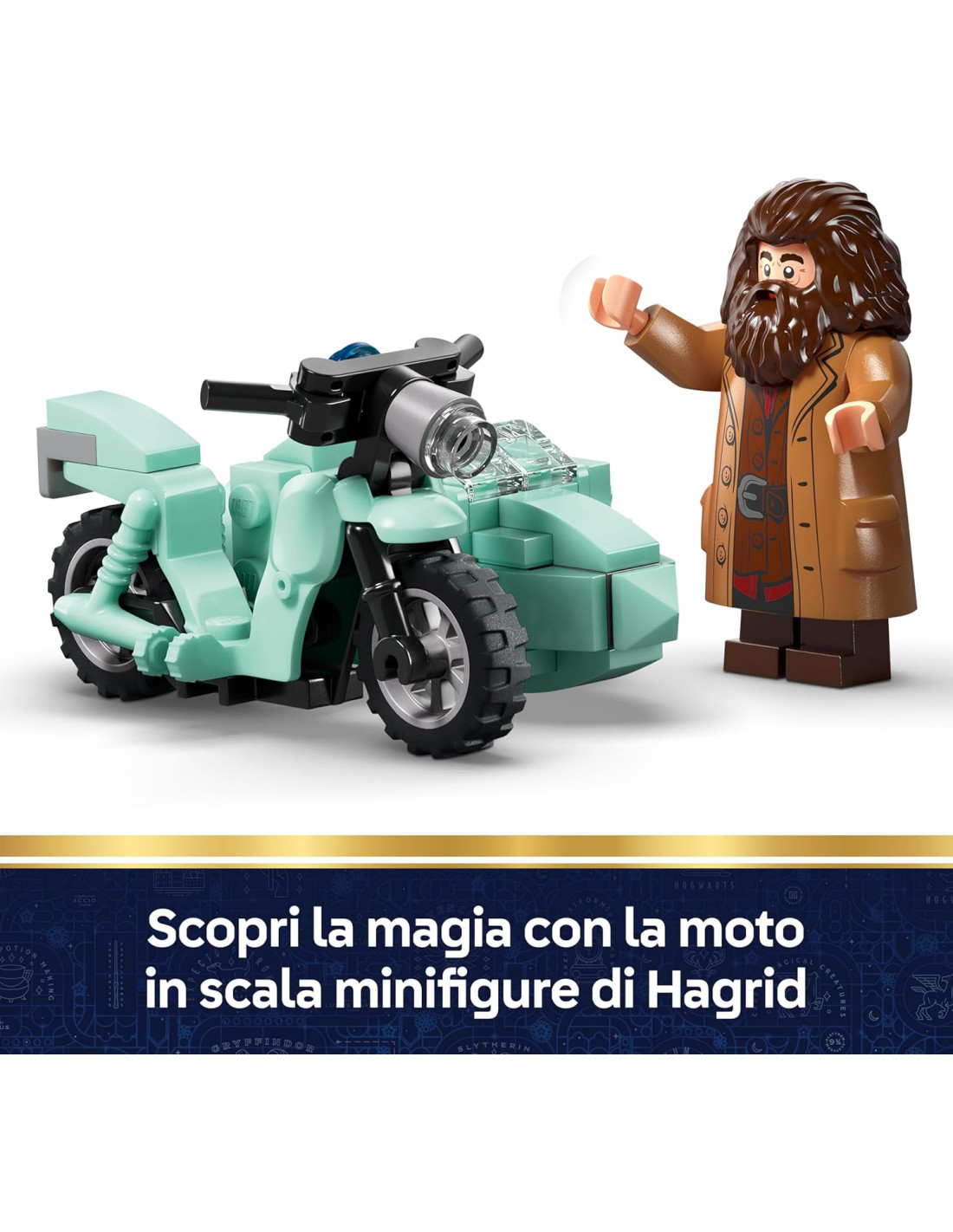LEGO in scala minifigure della motocicletta volante di Hagrid, completa di sidecar 4 PERSONAGGI LEGO HARRY POTTER: include le minifigure di Harry Potter e Rubeus Hagrid con occhiali da motociclista, oltre a due Mangiamorte; metti Hagrid sulla moto e Harry nel sidecar per dar vita all'azione