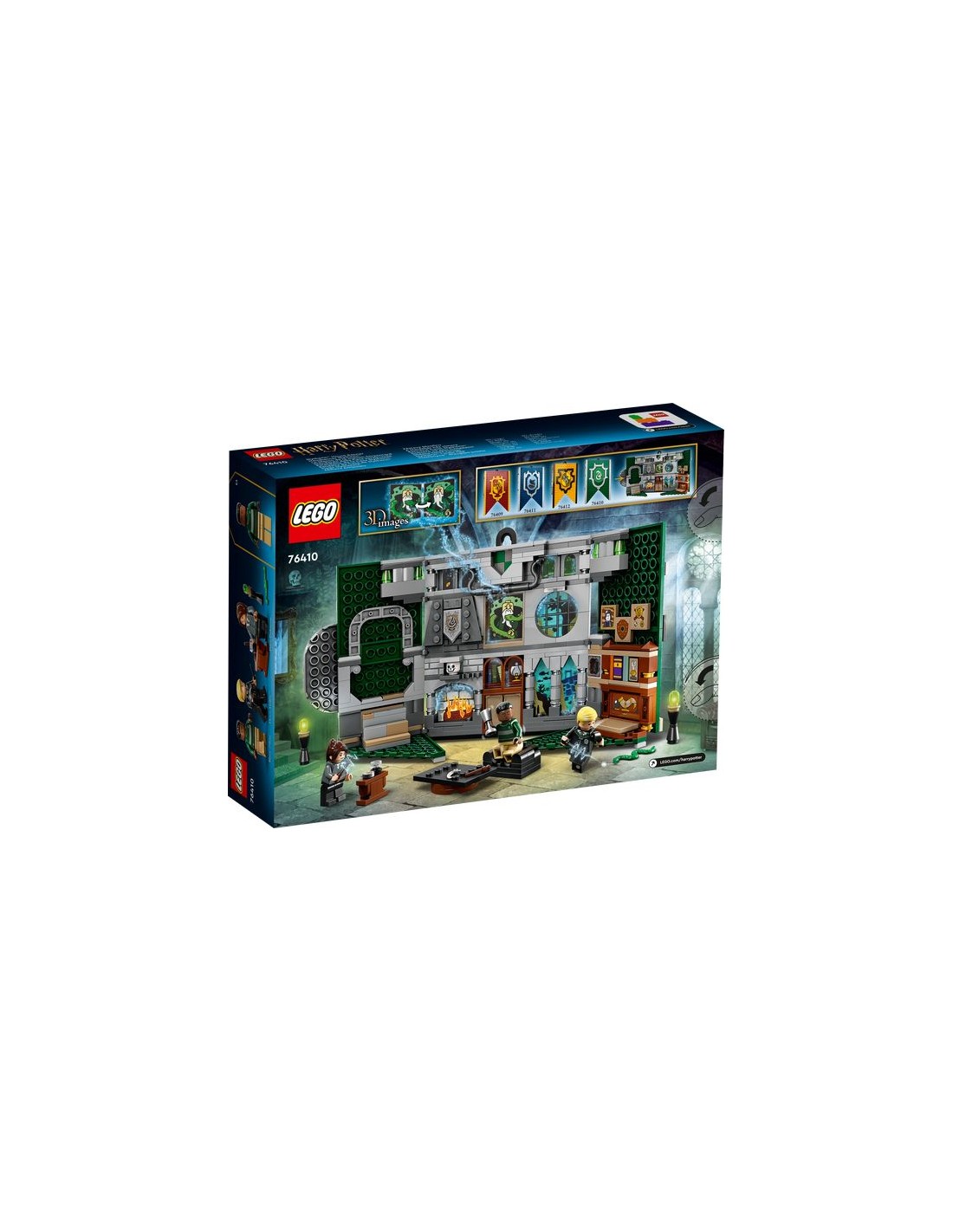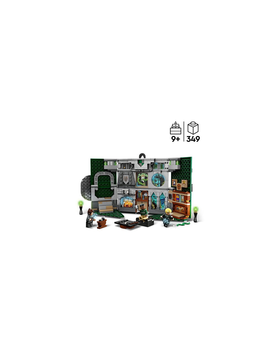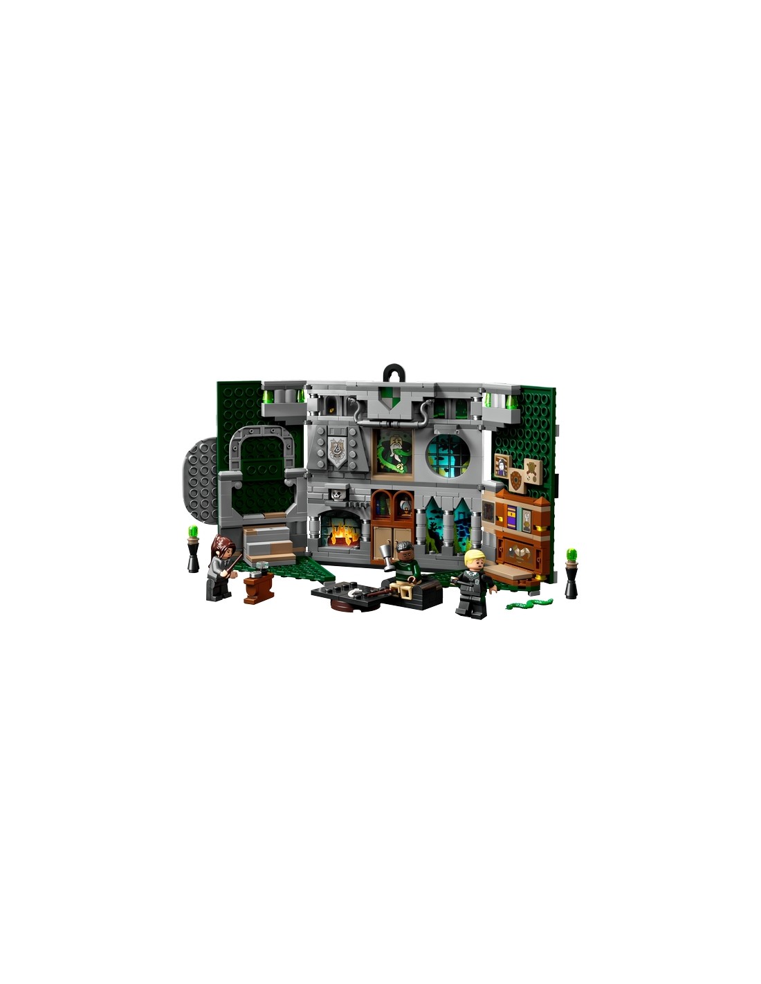 Un fantastico regalo per ogni occasione per i bambini dai 9 anni in su, con una tessera stampata con lo stemma di Serpeverde e un gancio per appenderlo alla parete. Lo stendardo si apre per rivelare un'affascinante ricostruzione della Sala comune di Serpeverde con divano, lampade e gradini costruibili.