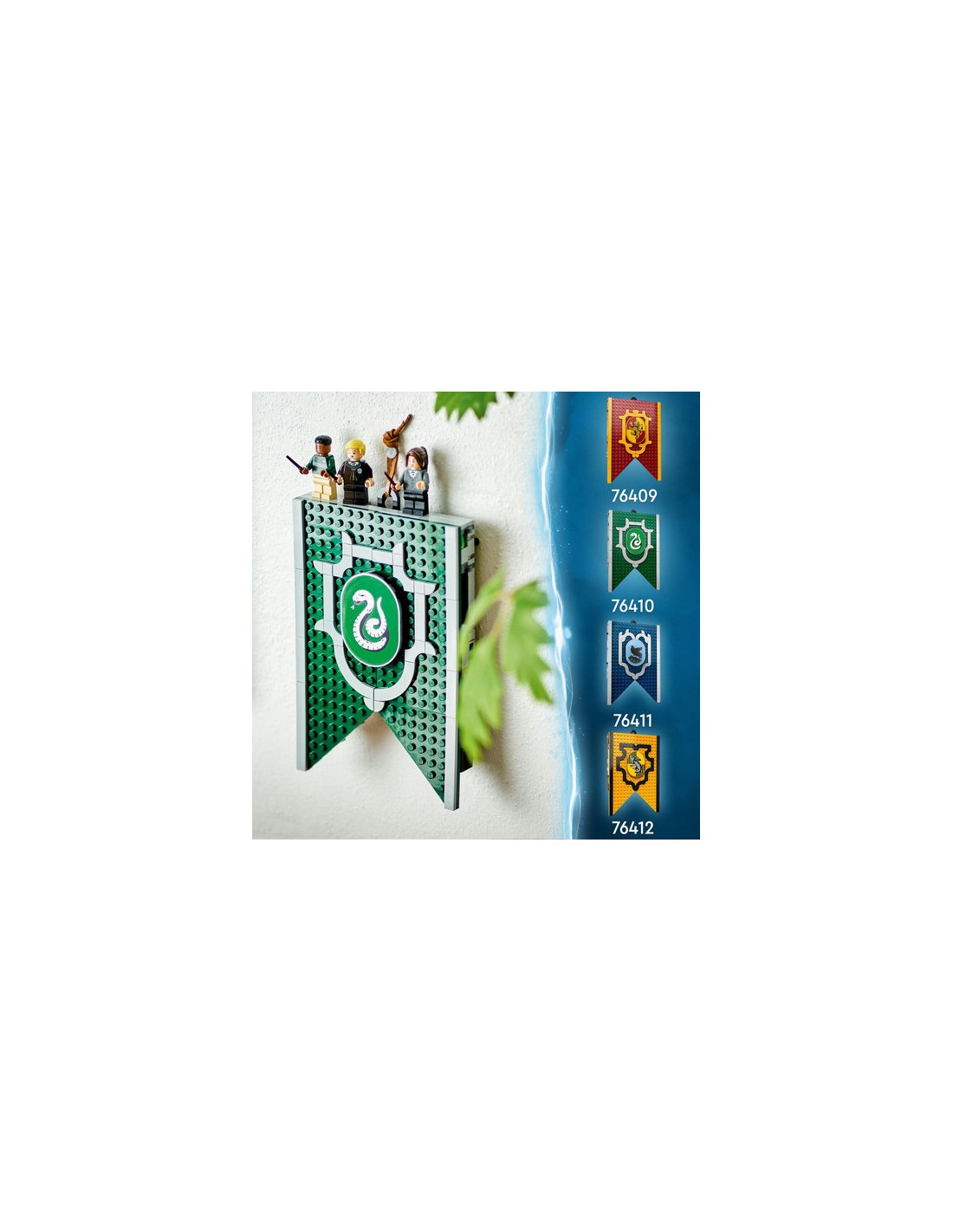 I fan di Harry Potter possono dimostrare il loro orgoglio per la casa di Serpeverde con questo stendardo della casa in mattoncini LEGO (76410).