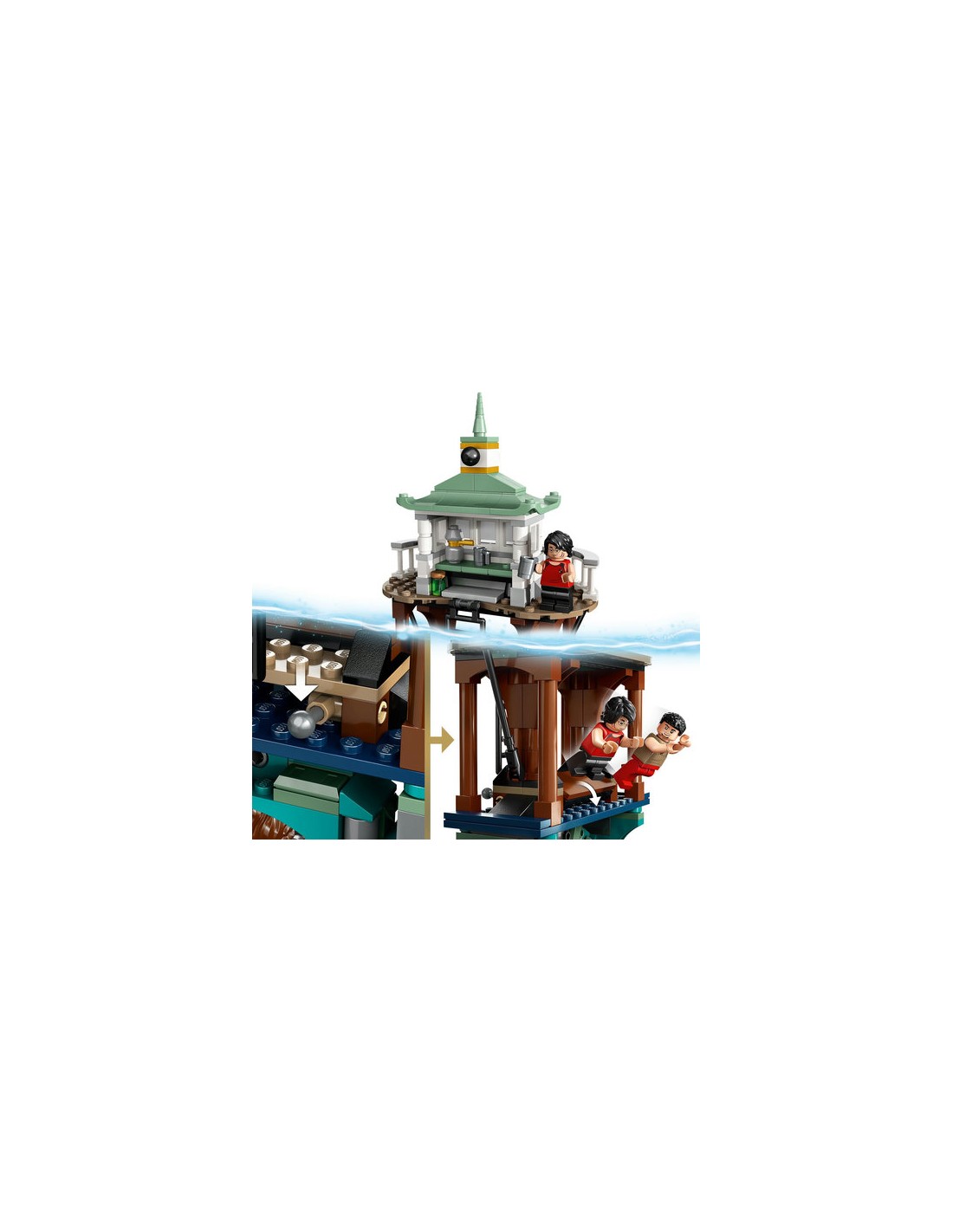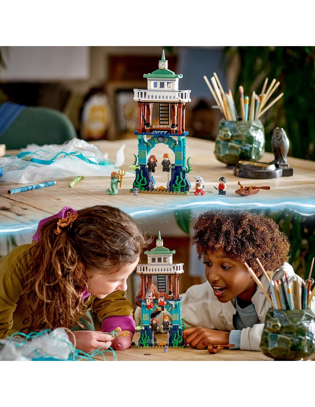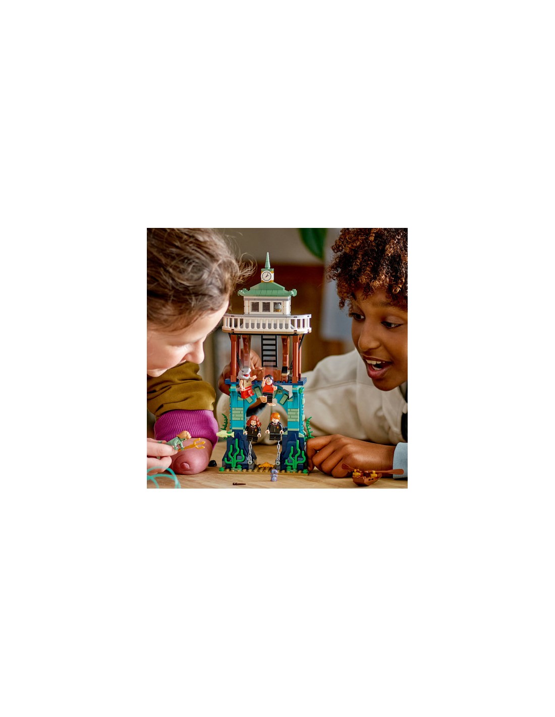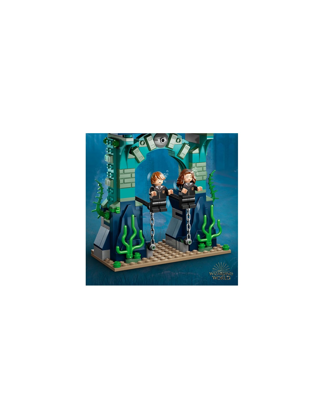 È presente anche un modello di molo, con funzione di immersione della minifigure, che può essere posizionato sopra la scena sott'acqua. Personaggi leggendari Dai vita a una scena classica di Harry Potter e il Calice di Fuoco con 5 minifigure LEGO, tra cui Harry Potter con elementi pinna e Viktor Krum con un elemento testa di squalo per aiutarli a salvare Hermione Granger e Ron Weasley.