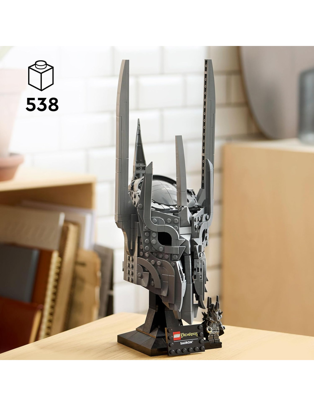 UN ELMO PER DOMINARLI TUTTI: una replica dettagliata completa di supporto da esposizione, targhetta con nome e minifigure LEGO del personaggio de Il Signore degli Anelli Sauron con l'Unico Anello