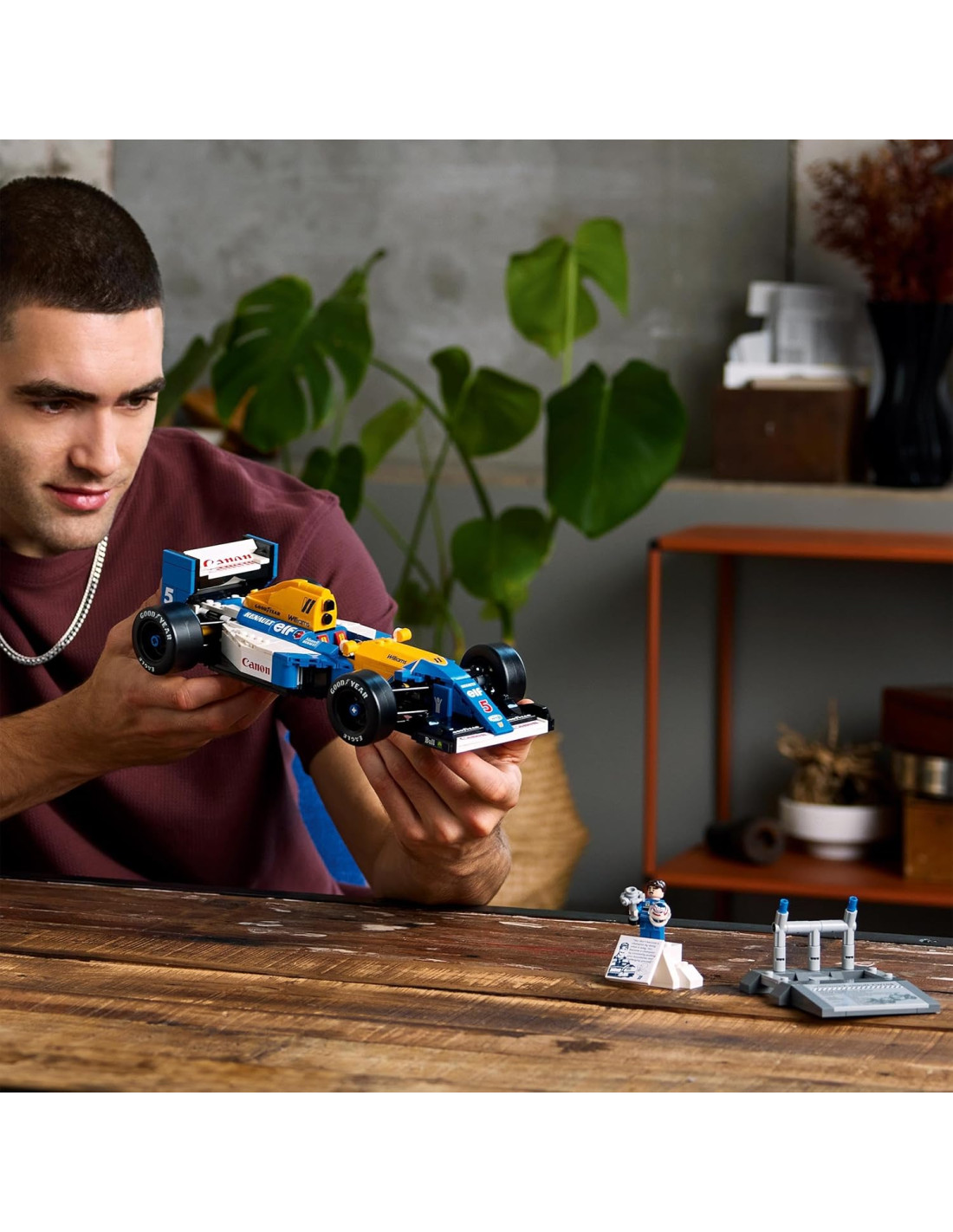 Celebra la storia dell'innovazione della Formula 1 con il modellino da costruire di auto da corsa F1 retrò, Williams Racing FW14B e Nigel Mansell (10353), una decorazione per casa o per la scrivania dell'ufficio da realizzare con le costruzioni LEGO Icons per adulti. Crea una replica della leggendaria monoposto di F1 che ha portato Nigel Mansell alla vittoria nel Campionato del mondo di Formula 1 del 1992. Completo della minifigure di Nigel Mansell, questo modello da collezione di auto premium, è un affascinante regalo per un uomo o una donna e per gli amanti delle auto appassionati di F1. La LEGO Williams FW14B è dotata di sterzo funzionante, di larghi pneumatici slick posteriori con scritta Goodyear stampata e di motore dettagliato, e comprende anche a un espositore con dettagli e statistiche della monoposto. La minifigure di Nigel Mansell F1 è completa di casco e di un espositore in stile podio con una foto e citazione del leggendario pilota. Scopri la gamma dinamica di set costruibili di auto LEGO F1 per adulti, bambini e famiglie. L'app LEGO Builder contiene una versione 3D delle istruzioni per la costruzione incluse in questo kit di auto da corsa collezionabile.