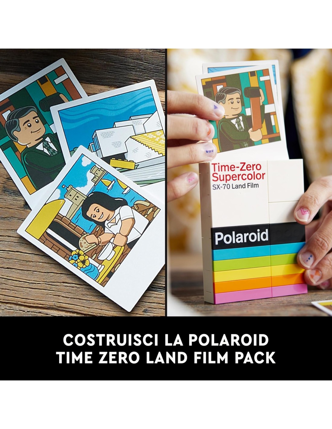 Regola la tua messa a fuoco e ricrea un classico del design. Questo set LEGO® da collezione per adulti, contenente un realistico modello in mattoncini della fotocamera Polaroid OneStep SX-70 (21345), è un fantastico regalo per i fotografi e gli amanti della mitica macchina fotografica. Immergiti in una costruzione di qualità e cattura i dettagli iconici come il mirino, la striscia colorata e la manopola della sensibilità alla luce, e aggiungi adesivi con grafica autentica. Costruisci un pacchetto di pellicole Time-Zero Supercolor SX-70 Land contenente 3 “foto” illustrate, tra cui una dell'inventore della Polaroid Edwin H. Land. Scegli una foto, caricala nella fotocamera, premi il pulsante rosso e la foto verrà “stampata”, proprio come nella realtà. Nella confezione e nell'app LEGO Builder troverai le istruzioni che ti guideranno attraverso ogni fase di un'esperienza di costruzione rilassante e creativa. Questo modello LEGO Ideas fa parte di una collezione accuratamente selezionata e di alta qualità di set LEGO per adulti. Qualunque sia la tua passione, c'è un progetto di costruzione che ti aspetta.