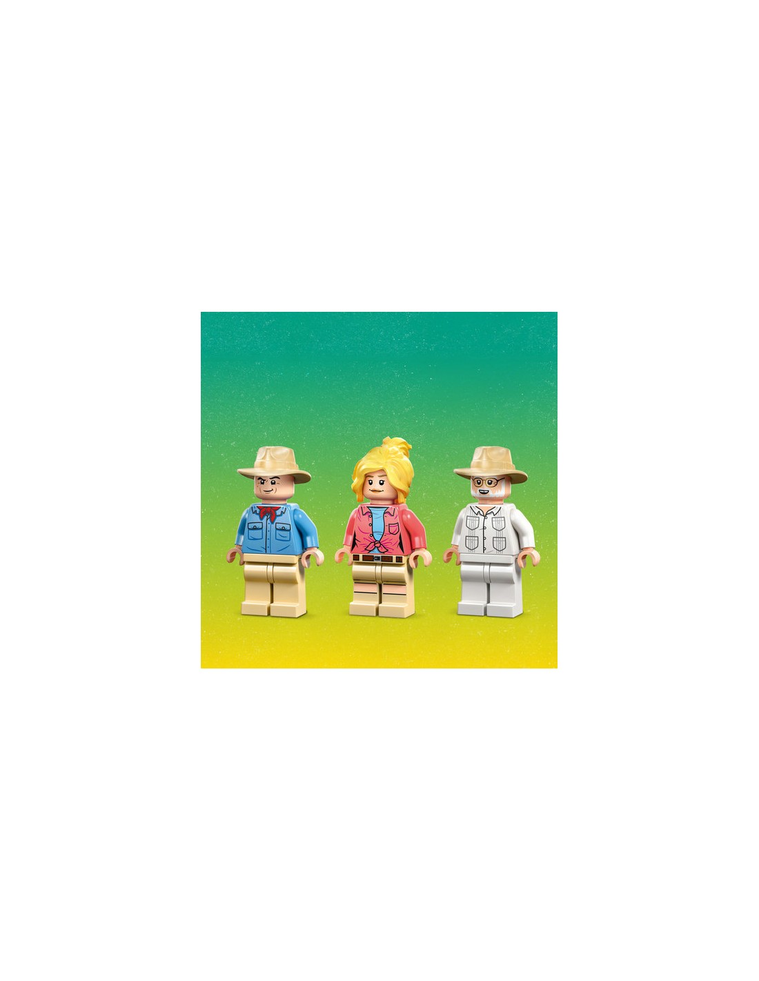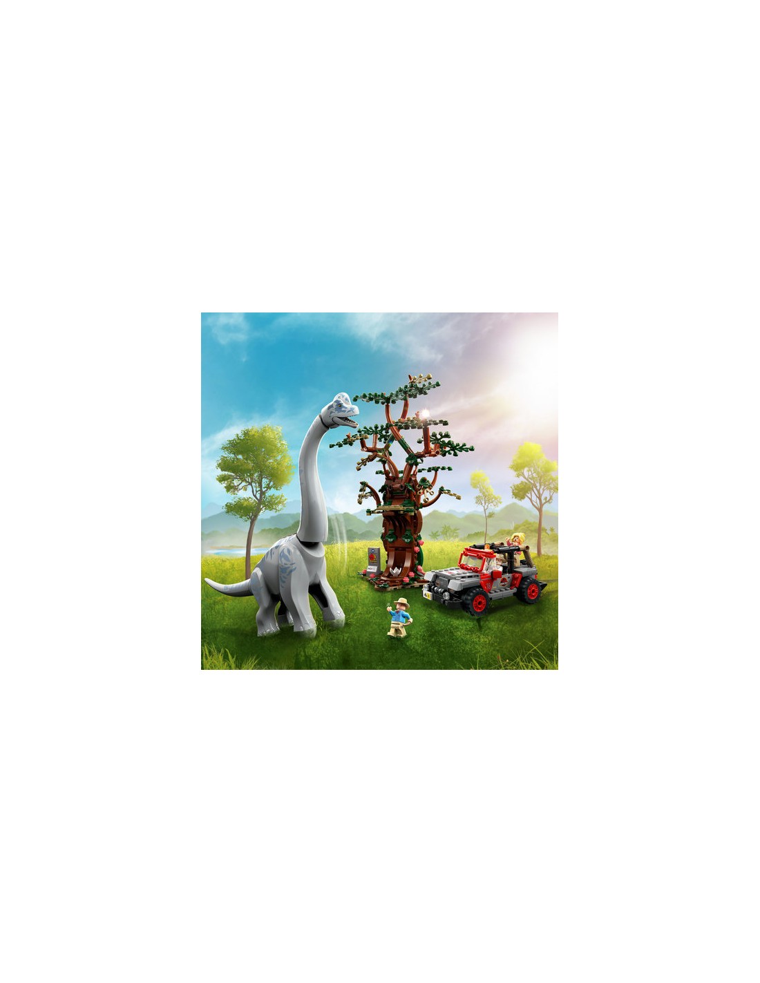 La Jeep ha spazio per le 3 minifigure – il Dottor Alan Grant, la Dottoressa Ellie Sattler e John Hammond – mentre l'albero è dotato di una piattaforma panoramica e di elementi fogliacei staccabili da “dare in pasto” al Brachiosauro, proprio come fa Alan Grant nel film.