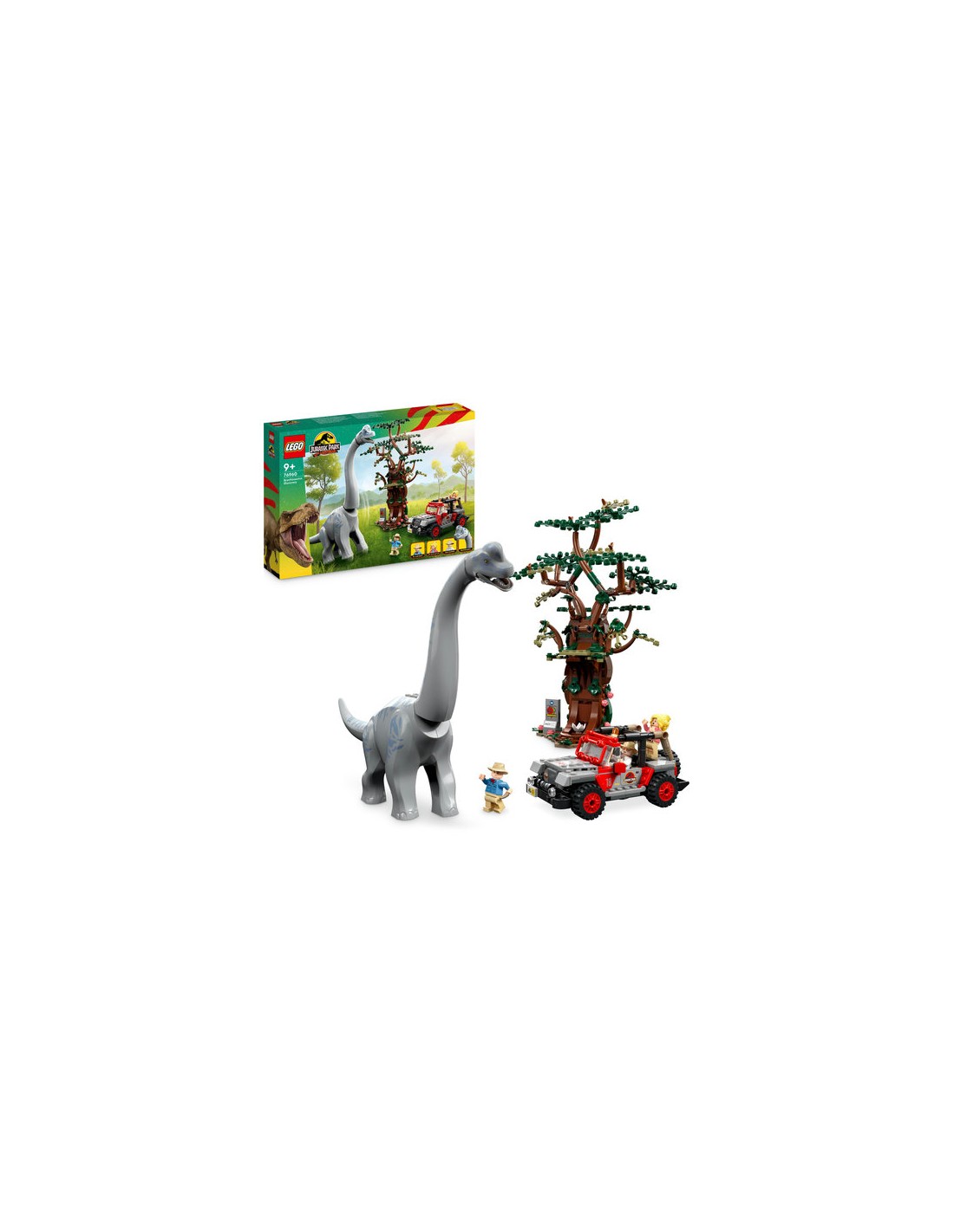 Una fantastica idea regalo per i fan di Jurassic Park, con un Brachiosauro snodabile, il dinosauro LEGO più alto mai realizzato, oltre a una Jeep Wrangler costruibile e a un albero.