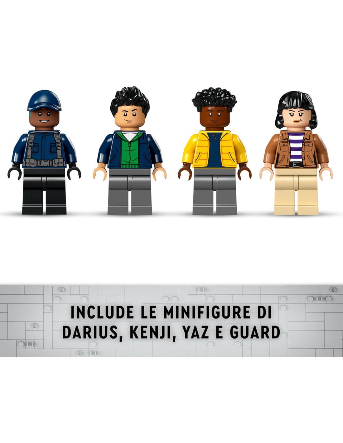 Nuove avventure con gli animali LEGO Jurassic World attendono i giovani fan del mondo preistorico, con il giocattolo Missione Dinosauro: Camion di Trasporto dell'Allosauro (76966), un gioco per bambini e bambine da 8 anni in su pieno di possibilità creative. Questo set con dinosauro giocattolo per bambini, è un divertente regalo di compleanno che consente ai piccoli di dar vita ad emozionanti storie d'azione. L'allosauro giocattolo è dotato di gambe mobili, testa e bocca apribile. Nel set sono comprese le minifigure di Darius, Kenji, Yaz e della guardia-autista, oltre ad un camion giocattolo semi-articolato dotato di tetto e cofano apribili, cabina per 3 minifigure con letto, rimorchio a gabbia con supporti anteriori e rampa posteriore apribile. La gabbia del camion LEGO può essere aperta premendo una leva. Sono inoltre compresi in questo set di giocattoli LEGO Jurassic World, un quad e un drone, più tanti altri elementi e accessori.