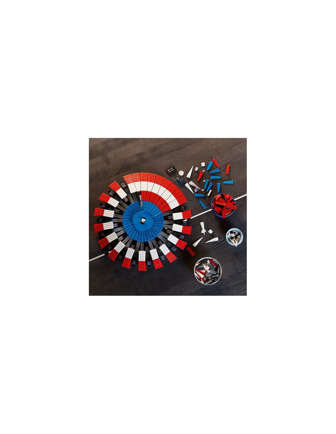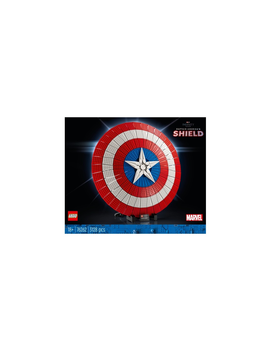 Una ricreazione di 3.128 pezzi dello scudo di Captain America, che misura 47 cm di diametro, che gli appassionati adulti possono costruire ed esporre.
