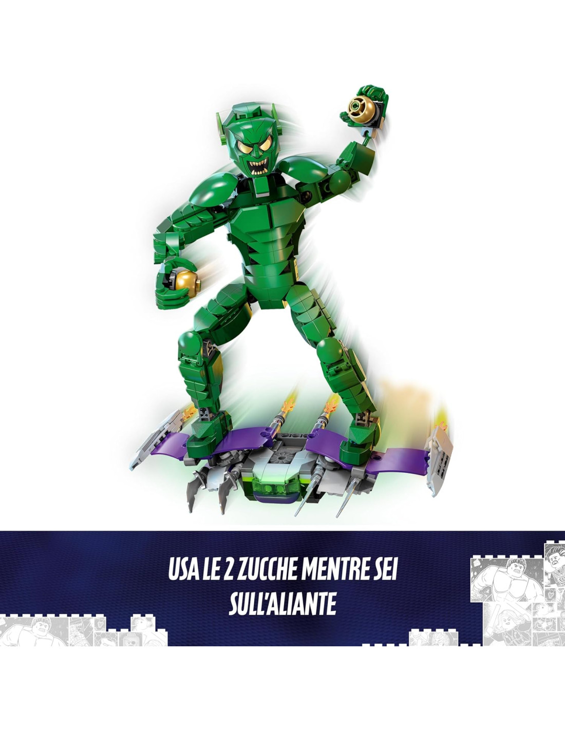 LEGOLEGO Marvel Personaggio Costruibile di Goblin, Gioco d'Azione per Bambini e Bambine da 8 Anni in su, Action Figure del Nemico di Sider-Man con Arti Snodabili, Aliante e Bombe-Zucca, Idea Regalo 76284