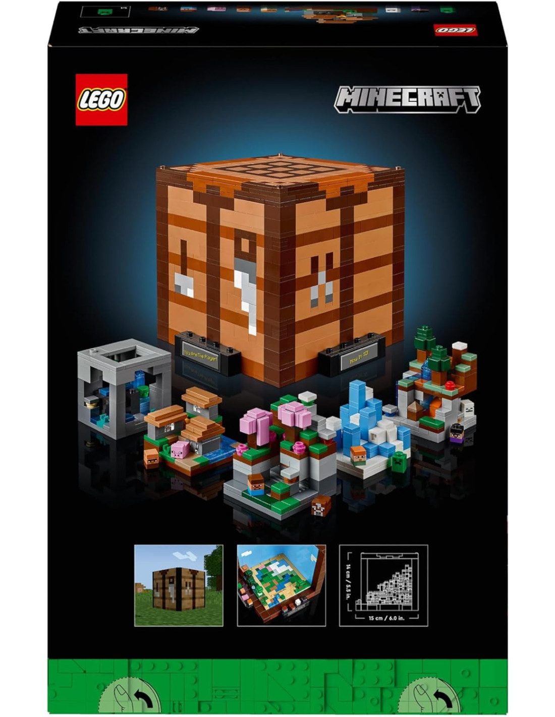Modellino da costruire LEGO Minecraft per adulti: il set d'avventura del Banco da Lavoro LEGO Minecraft celebra il 15° anniversario del popolare videogioco con una costruzione per esperti, progettata per gli appassionati adulti Costruzione per adulti LEGO Minecraft con 12 biomi: include Deep Dark, Grotta lussureggiante, Palude, Pianura, Foresta, Ciliegi in fiore, Deserto, Taiga, Taiga innevata, Grotta di speleotemi, Spuntoni di ghiaccio e Fiume Kit di modellismo da costruire ed esporre: 5 mini-modelli e 8 microfigure (Steve, Alex, scheletro, strega, Creeper Minecraft, villico, mucca e maiale) possono essere rimossi dal modello per molteplici possibilità di esposizione Set LEGO costruibile basato sul videogame: questo hobby creativo per adulti include scene sotterranee, adesivi con famose citazioni dal videogioco Minecraft e sorprese nascoste con cui creare una sfida gratificante per i fan e i costruttori esperti Idea regalo Minecraft per adulti con i mattoncini LEGO: questo set è un divertente regalo creativo per gli appassionati adulti, pensato per celebrare il 15° anniversario del popolare videogioco Istruzioni digitali incluse: l'app LEGO Builder contiene una versione digitale delle istruzioni di montaggio, che permettono di usare strumenti come lo zoom e la rotazione del modellino per una facile costruzione