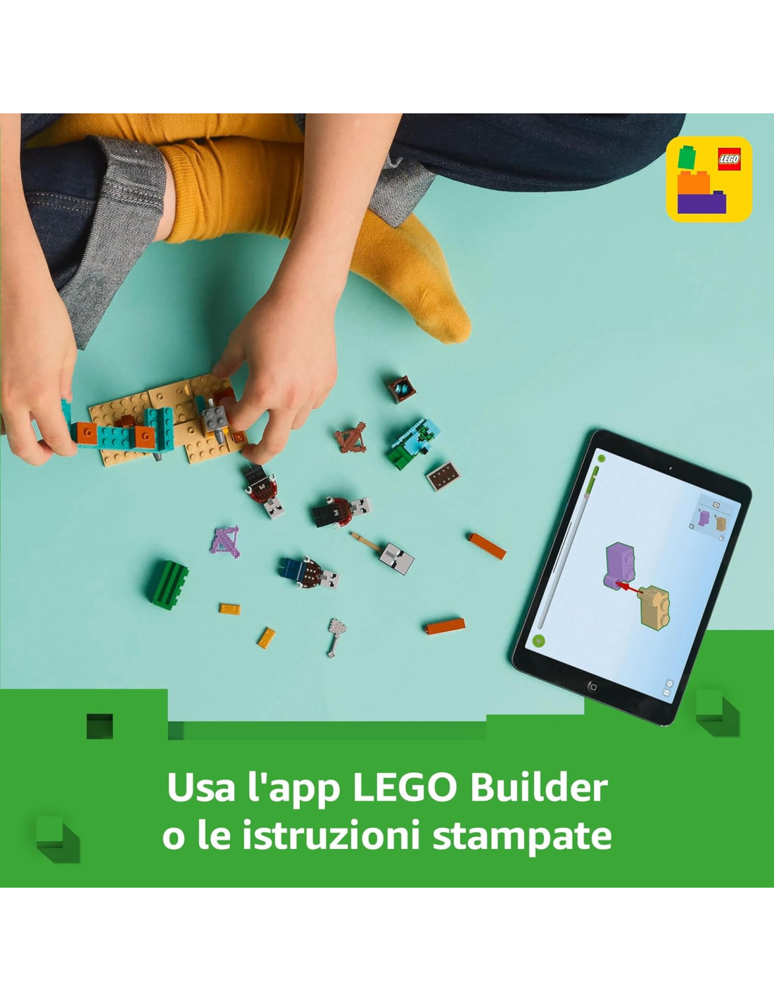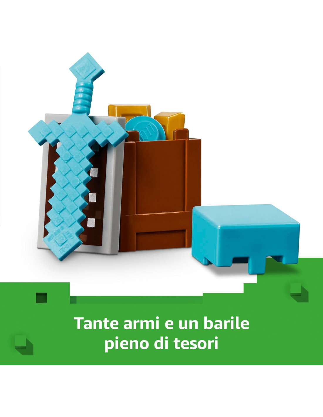 Divertimento nel deserto con questo set di giochi LEGO Minecraft: la Pattuglia nel Deserto della Bestia è un gioco da costruire per bambini e bambine da 7 anni in su, una sorpresa ricca di azione con cui dar vita al popolare videogioco Comprende 4 personaggi Minecraft: include 3 abitori, 1 personaggio eroe e una varietà di accessori autentici, tra cui una spada di diamante giocattolo, uno scudo e un'armatura Gioco di ruolo tratto dal videogioco: i piccoli usano le armi in dotazione e lanciano missili usando semplicemente un dito, per impedire agli abitori di rubare il loro tesoro Set con castello giocattolo nel deserto: questo piccolo set di costruzioni LEGO Minecraft per gamer offre momenti di azione e di battaglia intensi, in cui i piccoli giocatori dovranno proteggere il barile che contiene il tesoro Una sorpresa per i giocatori di Minecraft: questo set è una divertente idea regalo di compleanno per bambini e bambine da 7 anni in su che amano i giochi creativi d'avventura, fan del videogioco Minecraft Fai crescere la tua passione: tanti altri set della gamma LEGO Minecraft attendono i piccoli giocatori (disponibili separatamente), per completare la loro collezione di giocattoli Minecraft