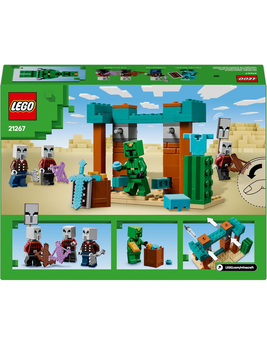LEGOLEGO Minecraft Pattuglia nel Deserto della Bestia, Gioco di Ruolo per Bambini e Bambine da 7 Anni in su con 4 Personaggi del Videogioco, Funzione Spara Missili, Armi Giocattolo e Tesoro 21267
