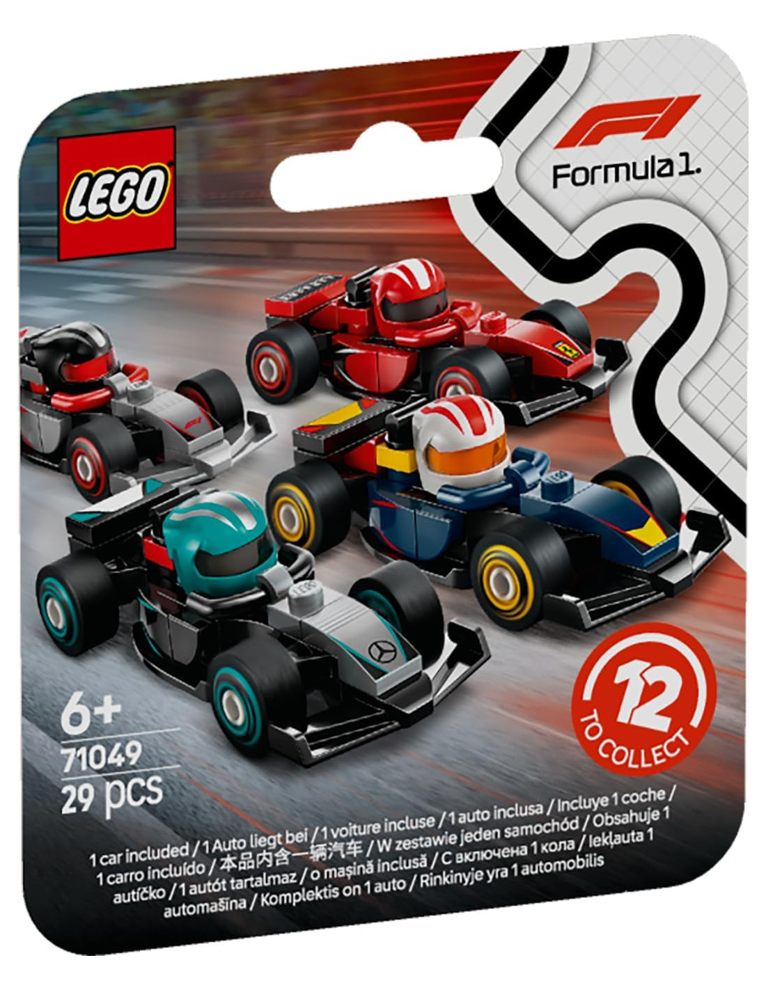 Scendi in pista per goderti il brivido delle corse di Formula 1 con questa gamma di scatole LEGO Minifigures misteriose, le Monoposto di F1 da Collezione (71049), un gioco per bambini e bambine da 6 anni in su appassionati di macchine giocattolo. In ogni kit di veicoli è inclusa 1 monoposto LEGO F1 da collezione, per un totale di 12 modellini di auto a sorpresa e casuali da scoprire.