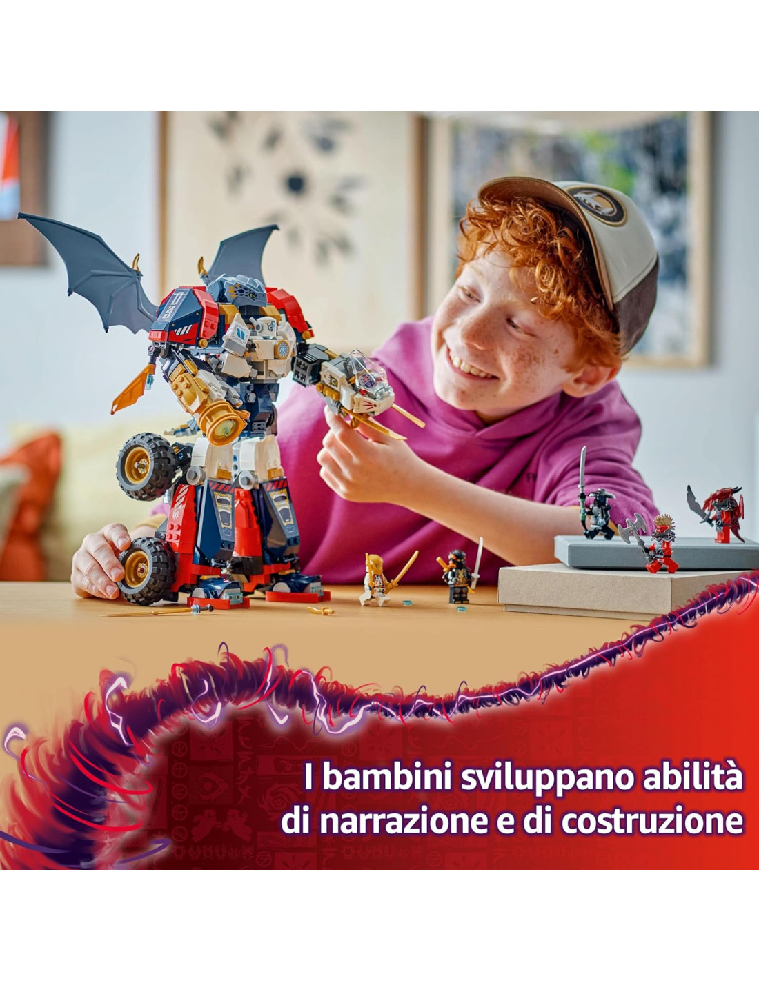 NINJAGO snodabile: il grande Mech LEGO è dotato di gambe, piedi, braccia, polsi, dita e testa snodabili, oltre ad ali di drago, cabina di pilotaggio, 2 shooter e una grande spada giocattolo