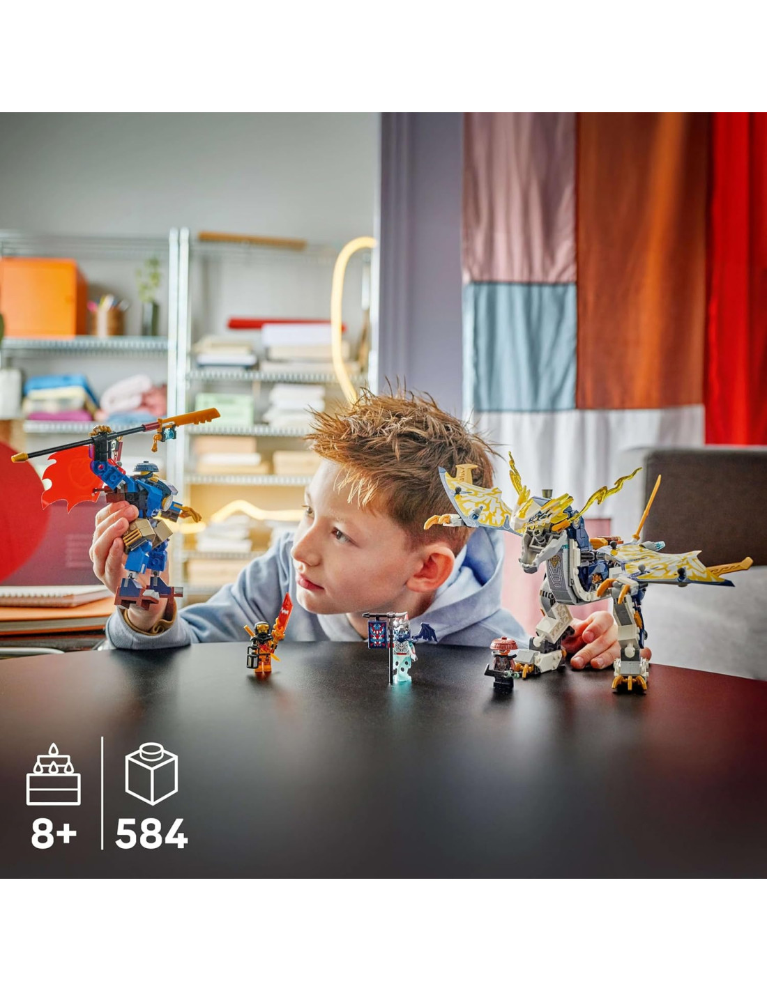 Robot giocattolo mech e drago LEGO NINJAGO: una volta costruiti, i piccoli possono montare il mech robot LEGO NINJAGO sul retro del primo drago robot, per creare il Mech Cavalca-Drago di Rogue