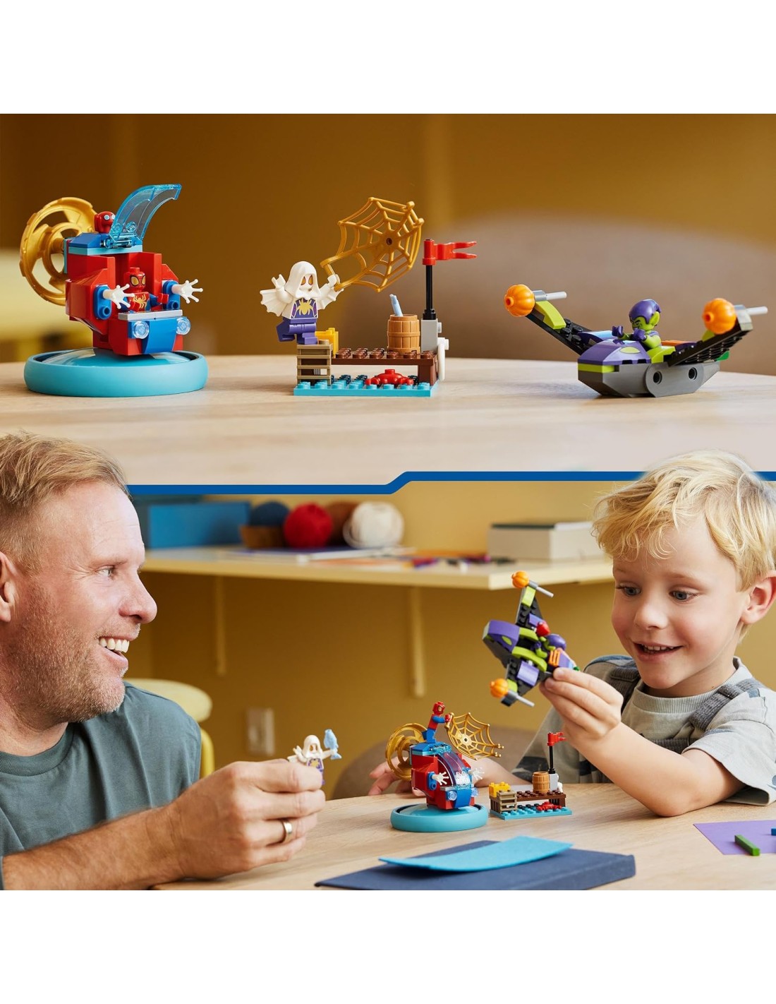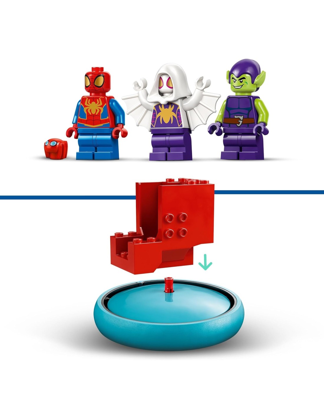 Regala ai bambini il set d'azione con veicolo giocattolo dei supereroi Spider-man vs. Goblin LEGO 4+ (10793). Questo giocattolo Marvel Spider-Man è appositamente progettato per infondere fiducia, migliorare le capacità di risoluzione dei problemi e ispirare il gioco di fantasia dei bambini e le bambine dai 4 anni in su. Questo set con veicolo giocattolo Spidey and his Amazing Friends Disney+ include: una minifigure di Spider-man e il suo hover spinner con elica rotante e cabina di pilotaggio sollevabile; una minifigure del Goblin con il suo aliante e proiettili di zucca; una minifigure di Ghost-Spider con il suo grande elemento ragnatela dorato. C'è anche l'amico robot di Spider-man, Trace-E, accessori marini e un simpatico granchio. Il set contiene lo Starter Brick della cabina di pilotaggio per aiutare a iniziare la costruzione e istruzioni intuitive sotto forma di una colorata guida illustrata. All'interno della scatola, ogni busta contiene mattoncini per un modello e un personaggio da costruire velocemente, così il gioco inizia immediatamente. I giocattoli 4+ sono il modo perfetto per condividere il divertimento costruttivo con i più piccoli.
