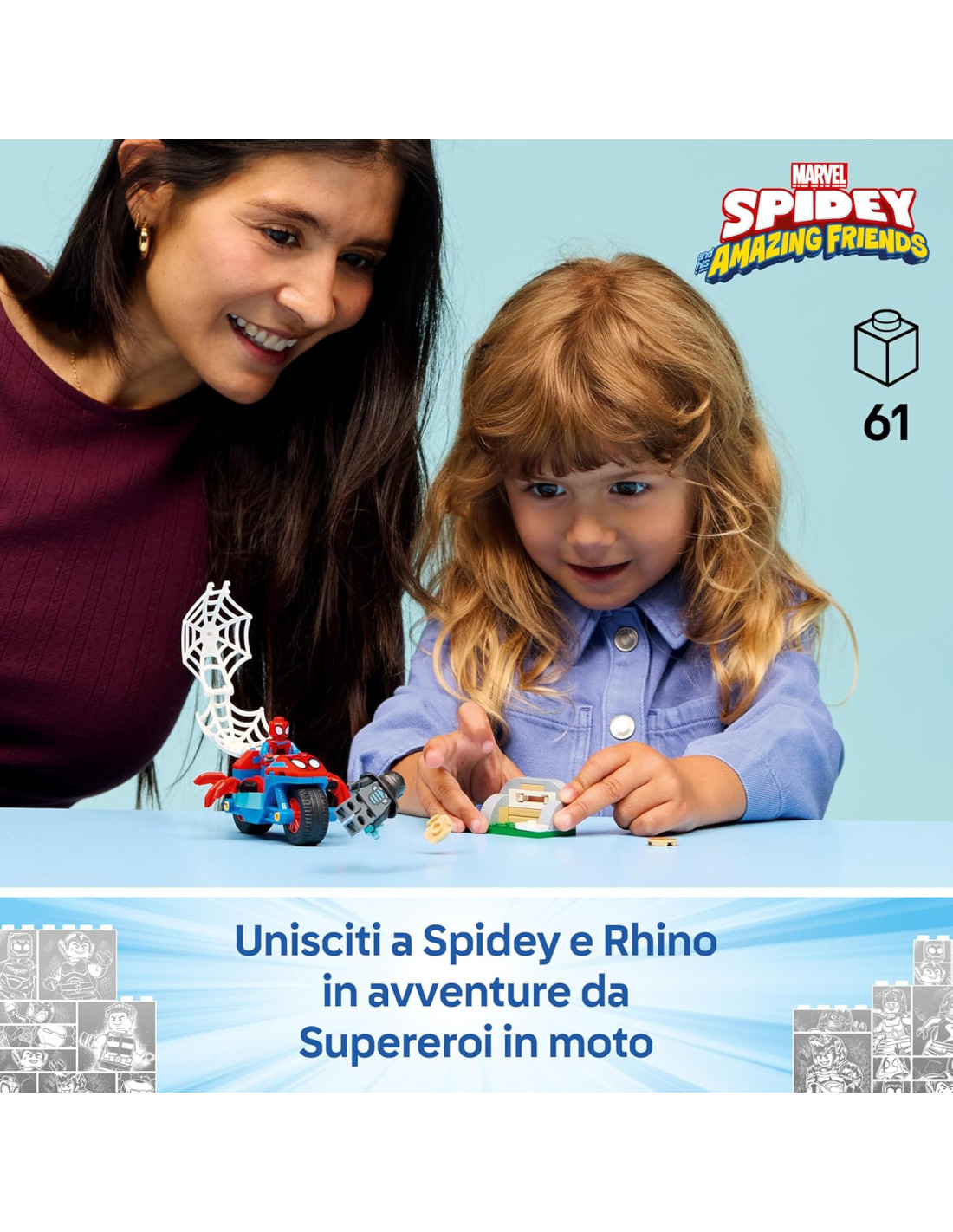 MOTO GIOCATTOLO DI SPIDEY: il gioco per bambini e bambine da 4 anni in su LEGO |Marvel Spidey sulla Moto Contro Rhino offre ai giovani fan della serie ore di divertimento e di inseguimenti da supereroi