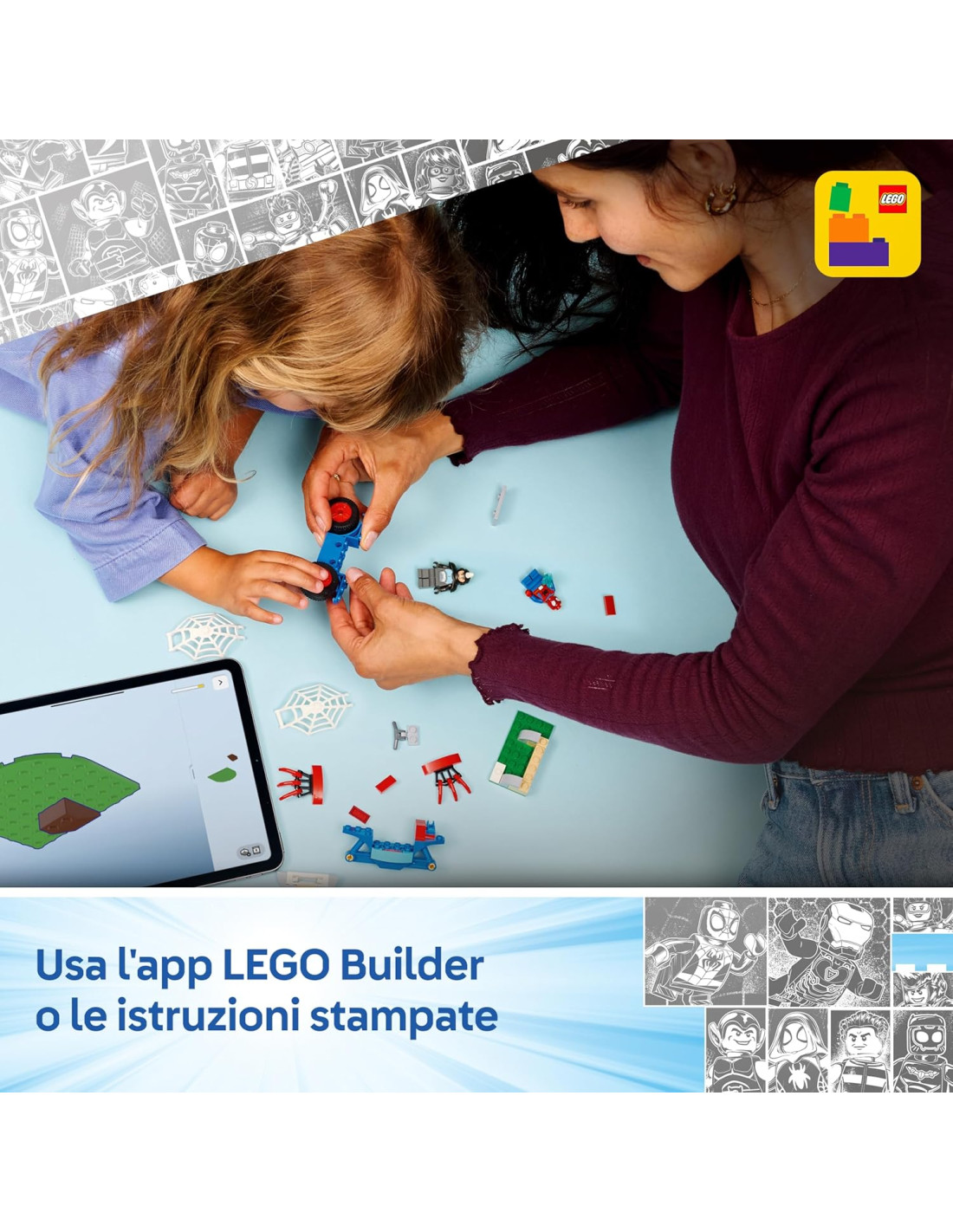 AVVENTURE MARVEL SU RUOTE: i piccoli aiutano Spidey a recuperare la gemma blu schivando le pizze lanciate dal forno di Rhino; possono intrappolare il cattivo grazie alla grande ragnatela posizionata sulla motocicletta giocattolo REGALO PER I FAN: un set pensato per gli appassionati di LEGO | Marvel Spidey, ottimo come idea regalo di compleanno per bambini e bambine da 4 anni in