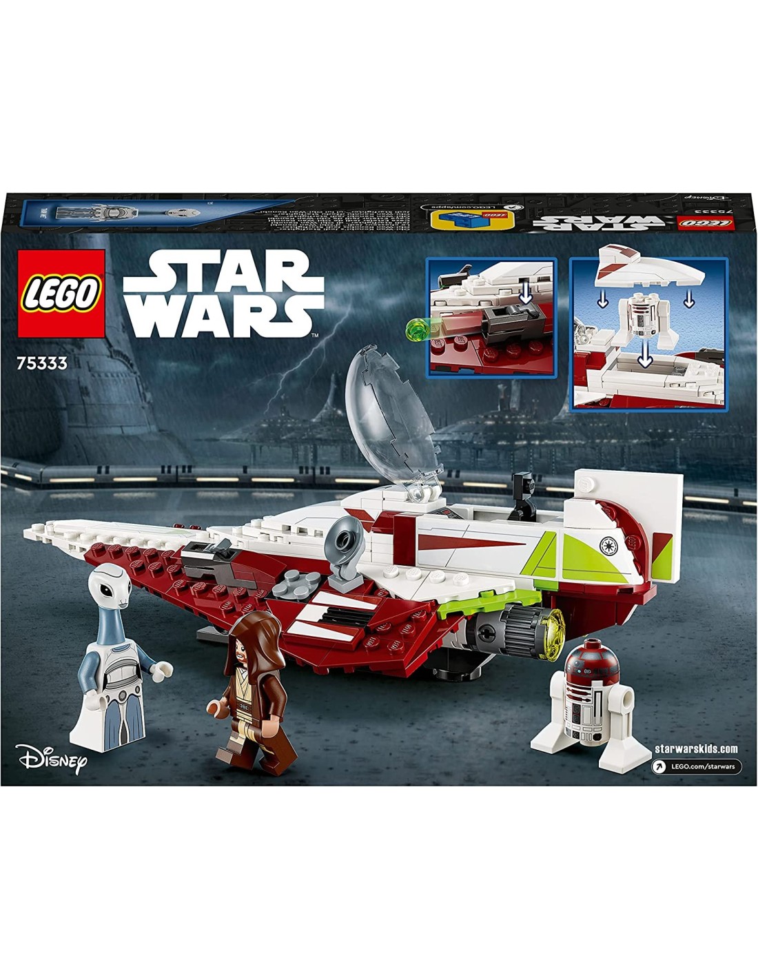 Un fantastico regalo per i bambini e le bambine dai 7 anni in su, questo set è caratterizzato da un abitacolo apribile per la minifigure di Obi-Wan, 2 shooter, carrello di atterraggio retrattile, clip per stivare le spade laser e un punto di collegamento sull'ala per la testa di R4-P17.