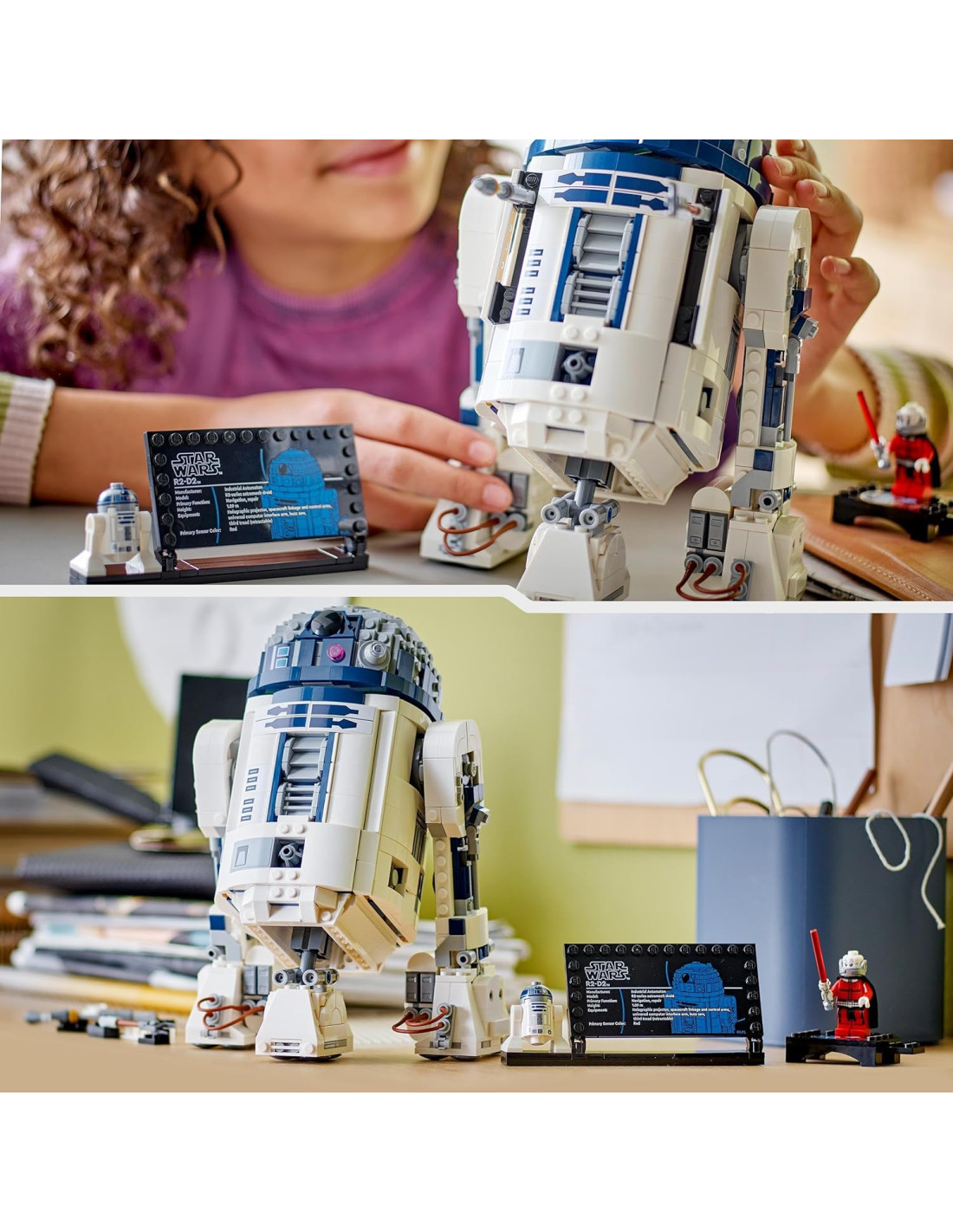 Personaggio LEGO Star Wars da costruire: questo set di giochi per bambini e bambine da 10 anni, permette di costruire il modellino del droide R2-D2 LEGO in mattoncini, uno dei personaggi più amati dell'universo di Star Wars Gioco Star Wars ricco di dettagli da esposizione: il modello di R2-D2 giocattolo è dotato di testa girevole a 360 gradi, di una terza gamba collegabile, di un periscopio da collegare e di strumenti montabili Un droide LEGO R2-D2 e una minifigure LEGO Star Wars: insieme al personaggio da costruire di R2-D2, questo set comprende una minifigure LEGO Star Wars di Darth Malak dotata di spada laser Divertente gadget Star Wars da collezione: il set include una targhetta informativa su R2-D2 e un supporto decorato per la minifigure compresa, con il logo del 25° anniversario LEGO Star Wars Idea regalo per i bambini e le bambine fan di Star Wars: regala questo giocattolo da costruire con R2-D2 LEGO, ai piccoli appassionati di Star Wars e ai collezionisti fan della serie Costruzione digitale interattiva: utilizzando l'app LEGO Builder, i bambini possono ingrandire, ruotare e visualizzare una versione digitale di questo giocattolo mentre costruiscono, tengono traccia dei progressi, salvano i set e altro ancora