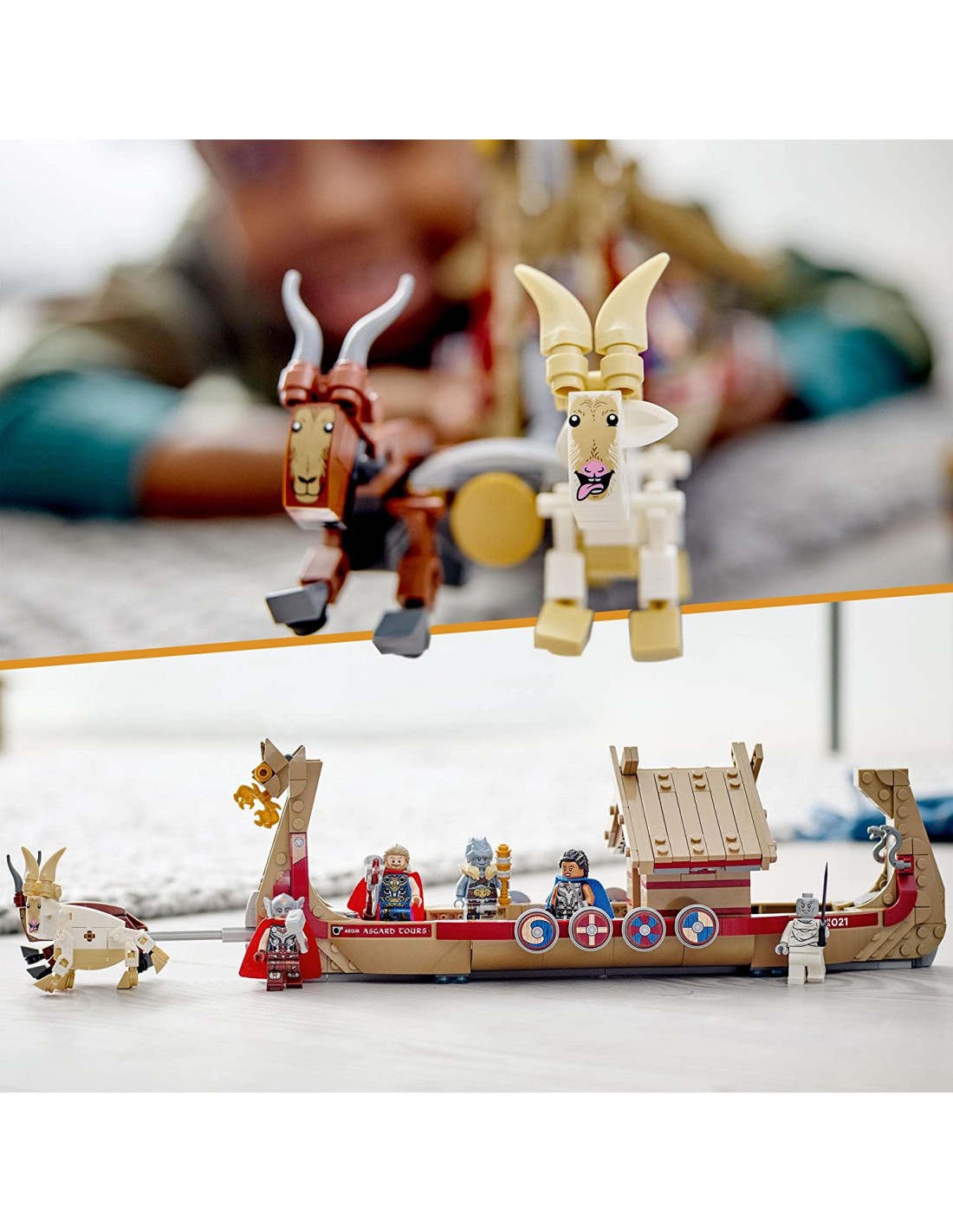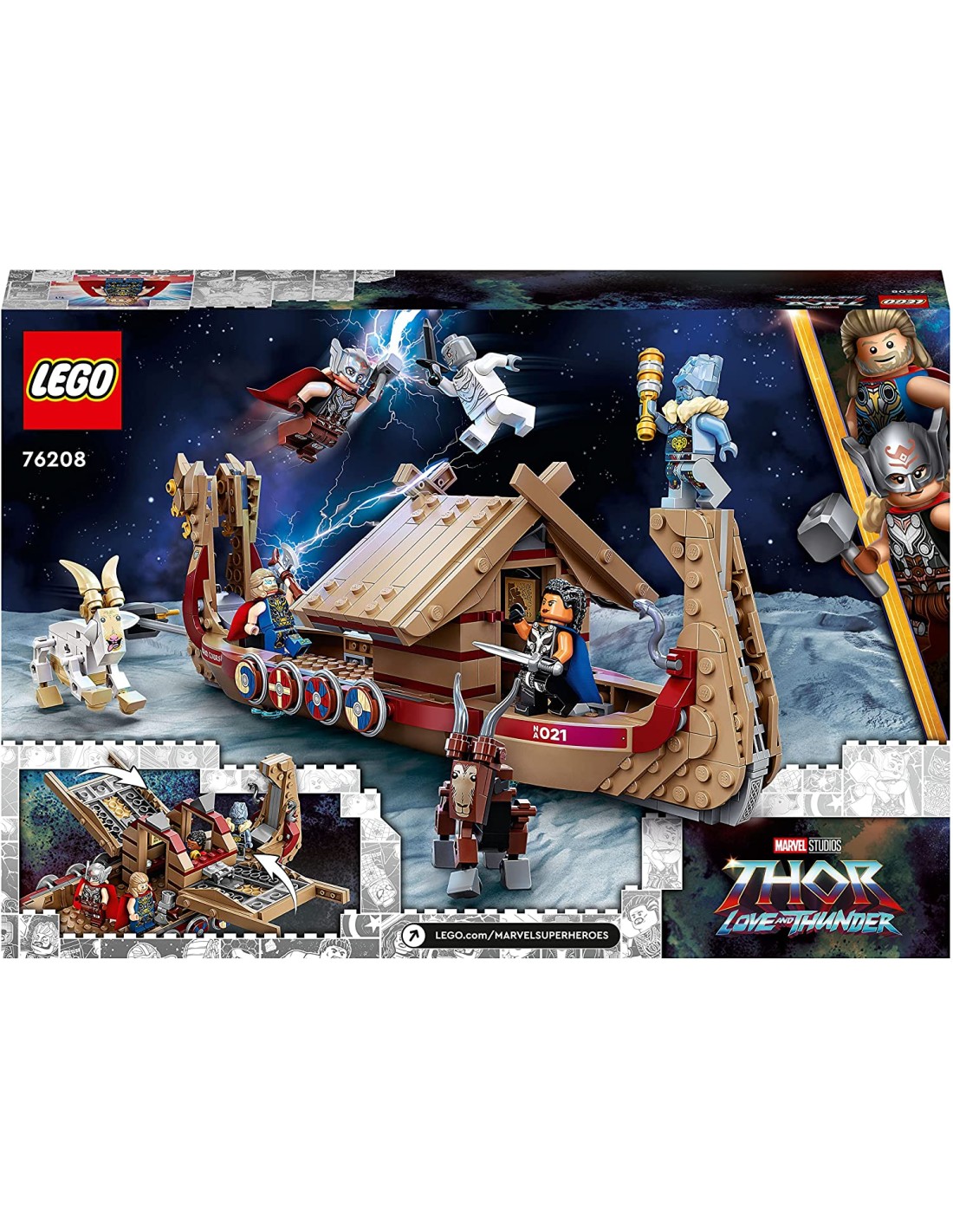 Il set include 5 minifigure: Thor, il Potente Thor, Valchiria, Korg e Gorr e una serie di armi e accessori, tra cui l'ascia Stormbreaker di Thor. La cabina centrale è dotata di tetto apribile per accedere al suo interno.