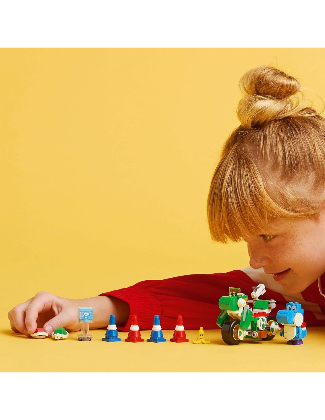 Idea regalo di compleanno LEGO Nintendo per i bambini: guida e fai lo slalom tra i coni su un modello in mattoncini della Moto giocattolo di Yoshi, con questo set di giochi d'avventura Mario Kart : Moto Yoshi di LEGO Super Mario Include il personaggio Mario Kart di Yoshi di colore azzurro: per la prima volta in un set LEGO Super Mario , è disponibile il personaggio di Yoshi azzurro, insieme ad un elemento banana con viso decorato Moto giocattolo da costruire: posiziona Yoshi azzurro sulla Moto Yoshi e guida tra 4 coni stradali, lancia gusci dalla moto ed evita la banana; un divertente set LEGO Mario Kart da collezione Gioco interattivo: guida la Moto Yoshi con LEGO Mario, LEGO Luigi o LEGO Peach (personaggi non inclusi) per attivare gli effetti sonori/visivi di Mario Kart, e ottenere oggetti digitali dal cubo oggetto Divertente regalo di compleanno per i bambini: regala questo set di giochi Mario Kart costruibile a bambini, bambine e fan Nintendo da 7 anni in su; per il gioco interattivo è necessario uno dei set 71439, 71440 o 71441 (disponibili separatamente) Oggetti collezionabili Nintendo: esplora la gamma completa di set Mario Kart LEGO Super Mario (disponibili a parte) e trova altri veicoli con cui gareggiare e personaggi, per espandere le possibilità di gioco di ruolo