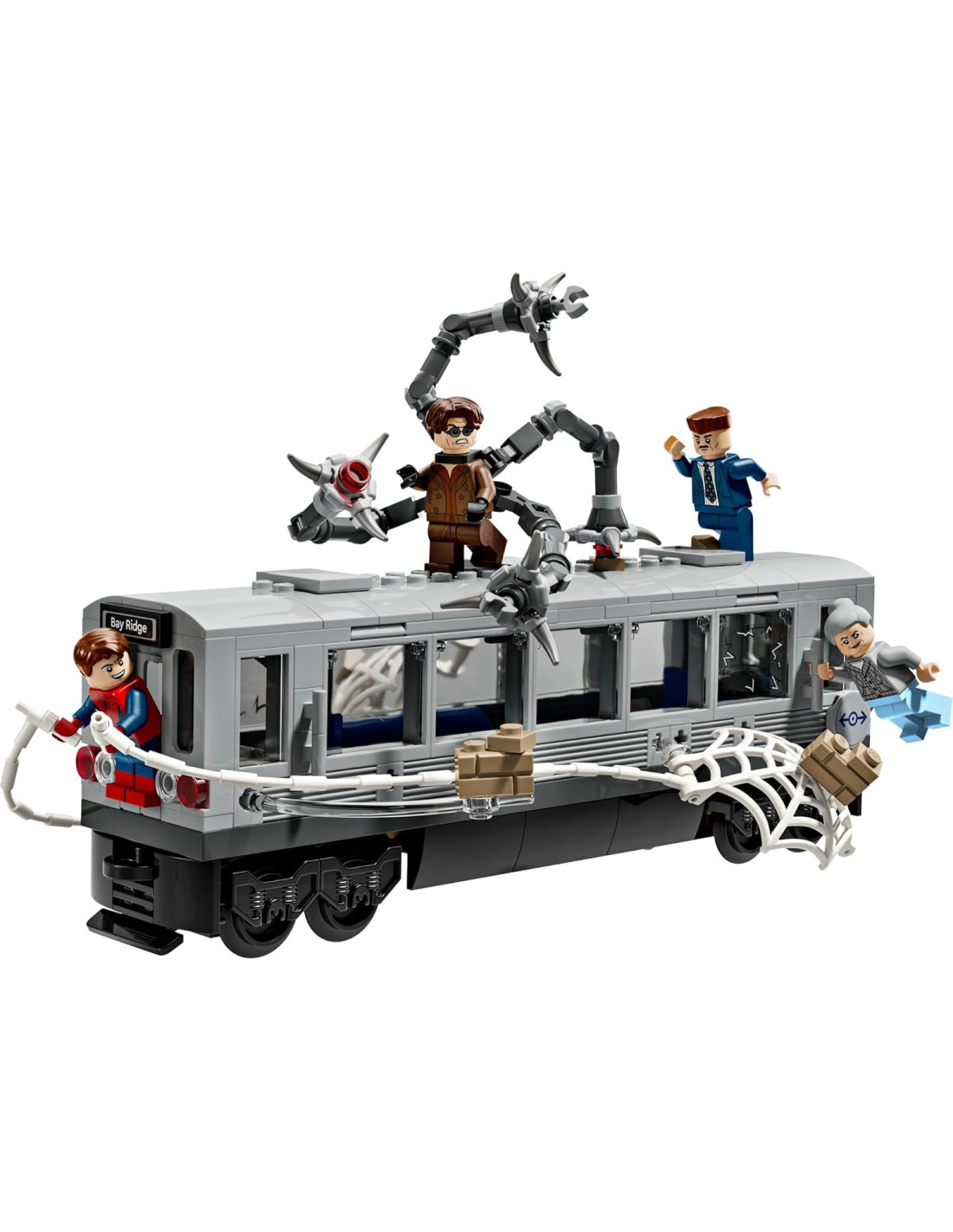 Set LEGO ǀ Marvel Spider-Man Contro Doc Ock: Duello sul Treno Giocattolo: questo gioco LEGO ǀ Marvel per bambini e bambine da 9 anni in su in mattoncini, permette di ricreare un'iconica scena dal film di Marvel Studios Spider-Man 2 Gioco da Supereroi: Spider-Man è dotato di una ragnatela con cui fermare il treno in corsa, mentre Doc Ock ha 4 tentacoli snodabili, 2 con elementi “raggio laser” e 2 con clip collegabili al treno LEGO Con 4 personaggi Marvel: questo set da esposizione e da gioco include le minifigure