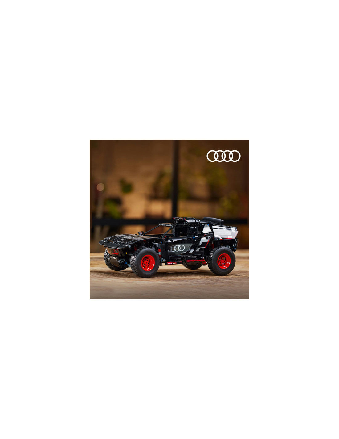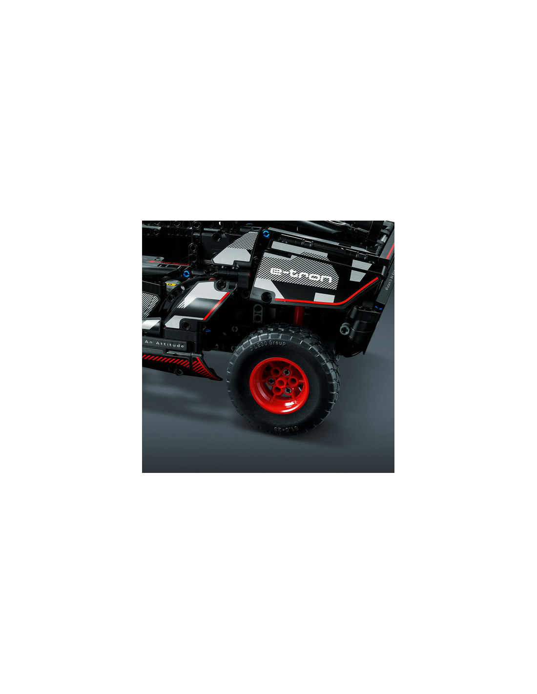 Questo modello incorpora molti dettagli realistici, come le singole sospensioni su ciascuna delle 4 ruote dell'auto. Presenta inoltre un nuovo elemento ruota Technic creato appositamente per questo modello e che riflette il design delle ruote Audi a grandezza naturale.