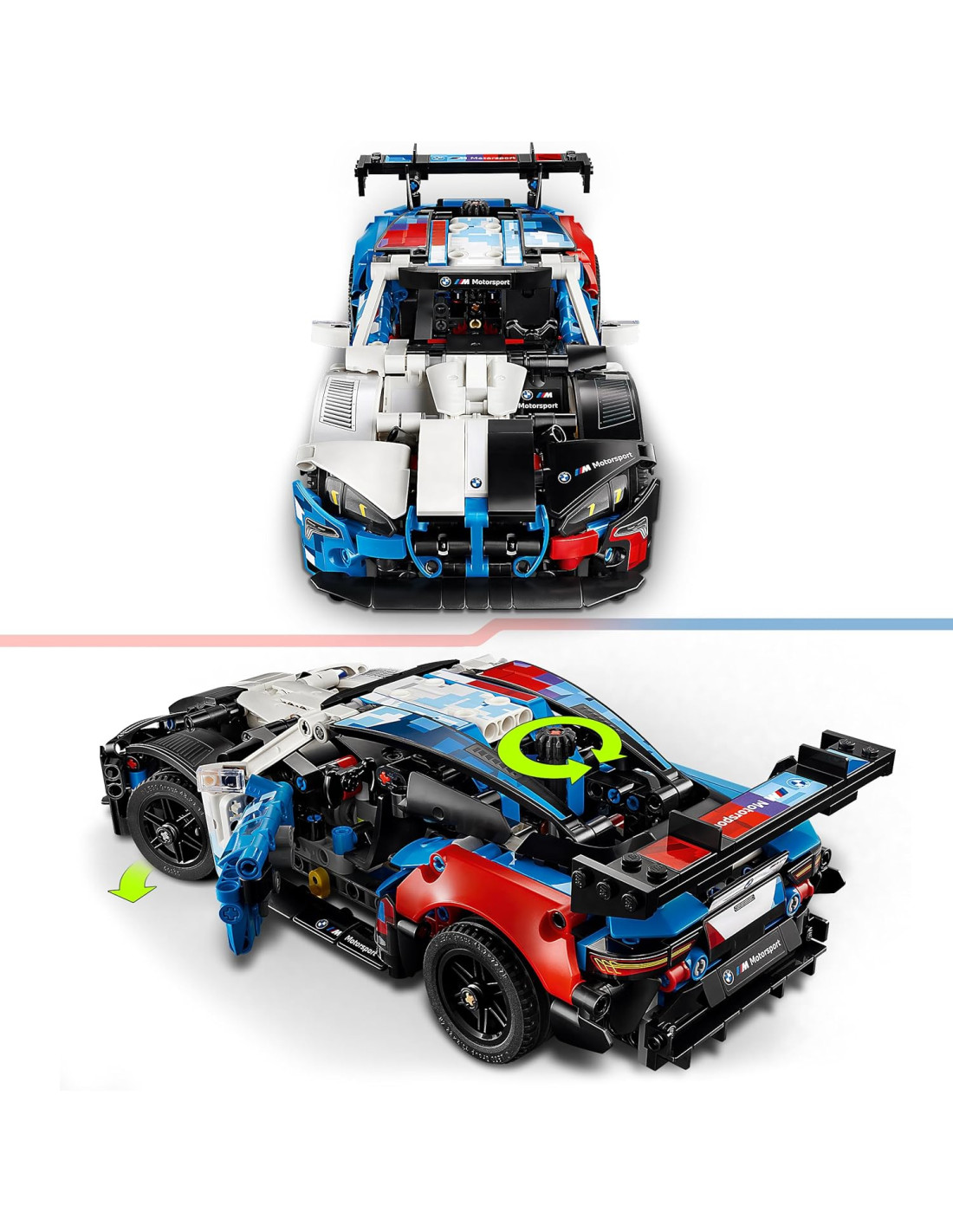 DETTAGLI AUTENTICI: l'auto BMW LEGO Technic è caratterizzata da dettagli realistici, come lo sterzo funzionante, il motore a 6 cilindri e le portiere apribili, oltre agli iconici colori del mezzo reale