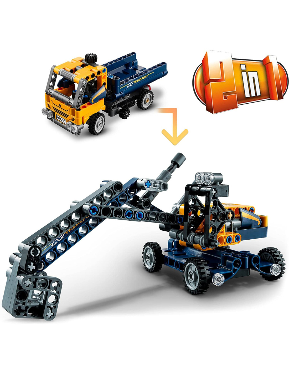 LEGO 42147 Technic Camion Ribaltabile, Set 2 in 1 con Camioncino ed Escavatore Giocattolo, Giochi per Bambini e Bambine dai 7 anni in su, Idee Regalo