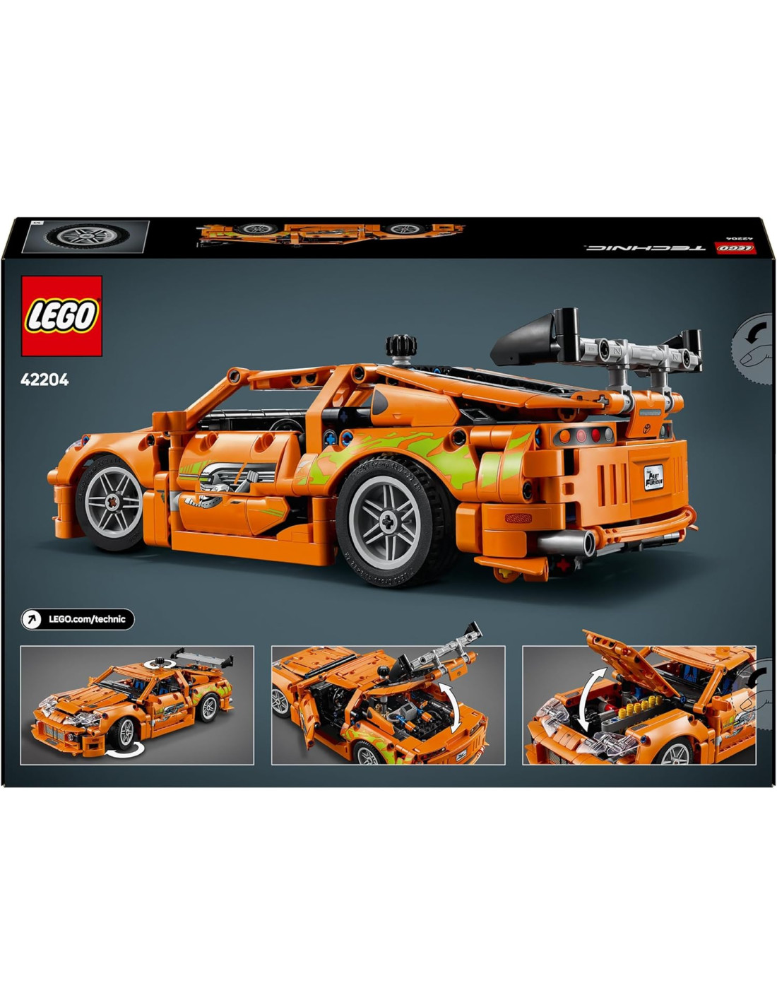 Questo kit di auto per i bambini e le bambine accende il divertimento ad alta velocità per i fan di Fast and Furious dai 9 anni in su. Assembla i dettagli autentici dell'auto sportiva Fast and Furious Toyota Supra MK4 LEGO Technic (42204), quindi aumenta il divertimento esplorando i dettagli realistici. Questo modello dell'iconica auto del film include un motore a 6 cilindri, sterzo, cofano apribile e tetto Targa rimovibile. Nel bagagliaio ci sono anche 2 bombole di NOS, proprio come quelle viste nelle scene emozionanti del primo film Fast and Furious. Questo set con auto Supra è un regalo creativo per i bambini che amano le auto di Fast and Furious. È anche un fantastico set da costruire insieme mentre condividi la tua passione per il franchise cinematografico ad alto numero di ottani. I set LEGO Technic presentano movimenti realistici per introdurre i giovani costruttori LEGO all'universo dell'ingegneria. Offri ai bambini un'avventura di costruzione facile e intuitiva con l'app LEGO Builder, dove possono ingrandire e ruotare i modelli in 3D, salvare set e monitorare i loro progressi.