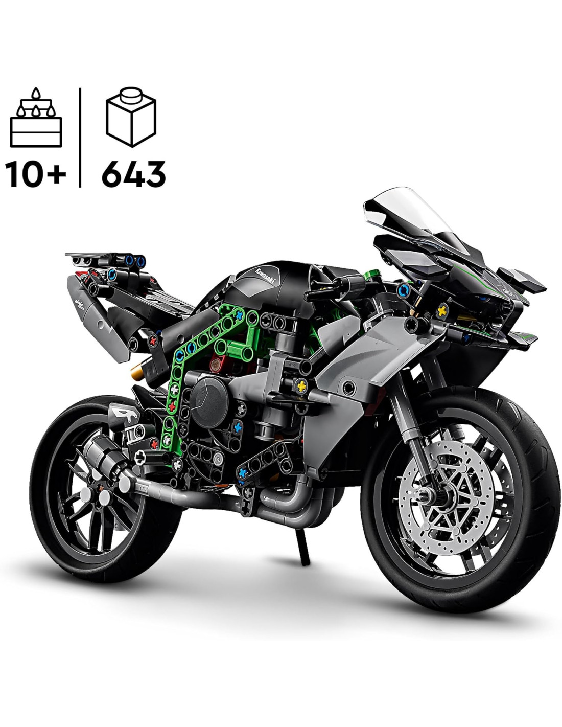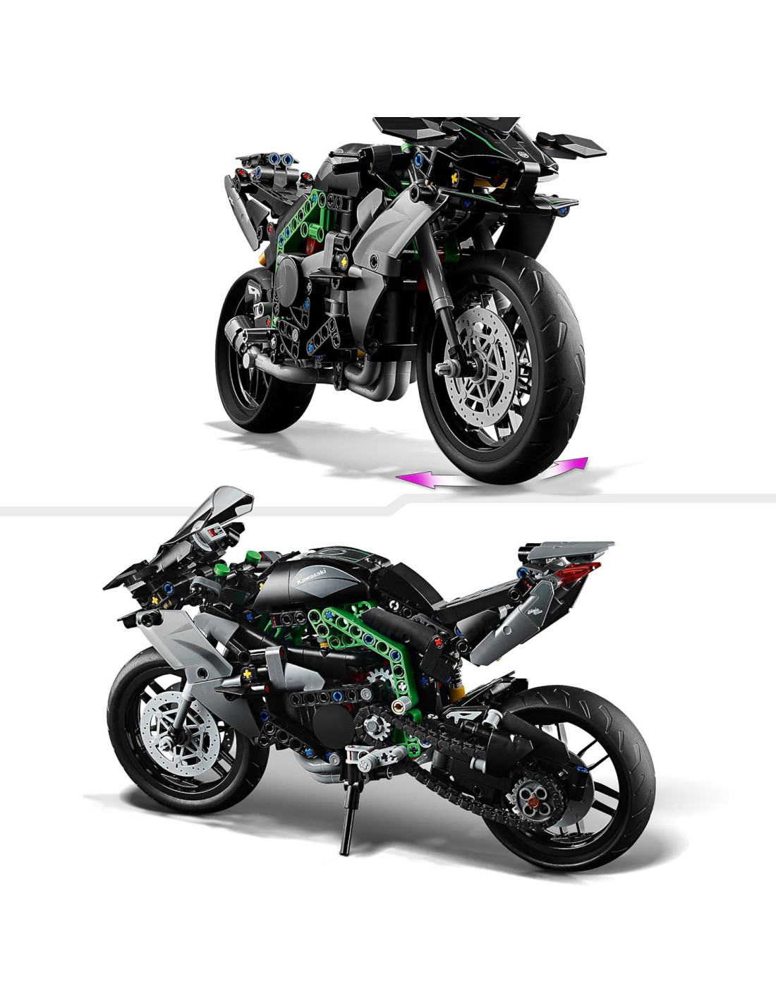 Il set con motocicletta giocattolo Kawasaki Ninja H2R LEGO Technic presenta dettagli autentici ed è un fantastico regalo per i bambini che amano le moto giocattolo.